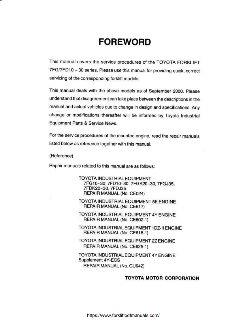 Toyota-7FG-7FD-7FGK-7FDK-Forklift-Trucks-Repair-Manual-PDF找手册网12天前发布关注私信10.48MB111页032Toyota-7FG-7FD-7FGK-7FDK-Forklift-Trucks-Repair-Manual-PDF此内容为付费资源,请付费后查看¥29¥31黄金会员免费钻石会员免费登录购买付费资源 第1页 / 共111页 第2页 / 共111页 第3页 / 共111页 第4页 / 共111页 第5页 / 共111页 第6页 / 共111页 第7页 / 共111页 第8页 / 共111页 第9页 / 共111页 第10页 / 共111页 试读已结束,还剩101页,您可下载完整版后进行离线阅读 THE END三一/合力/大连叉车/丰田叉车/林德叉车/三菱叉车/永恒力 文本预览 TOYOTADPAIRMANGAL7FG10,15,18,20,25,307FD10,15,18,20,25,307FGK20,25,307FGJ357FDK20,25,307FDJ35SupplementPub.No.CE029 查看更多 收起部分 喜欢就支持一下吧收藏