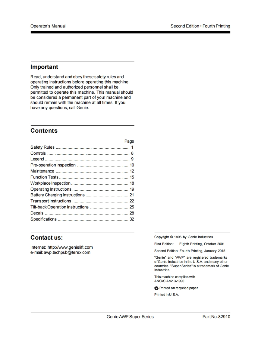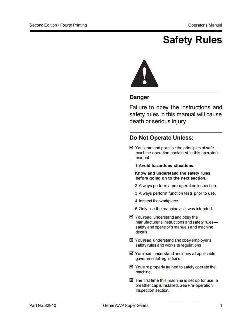 GENIE-AWP40S_操作说明书手册找手册网13小时前发布关注私信0.74MB37页047GENIE-AWP40S_操作说明书手册此内容为付费资源,请付费后查看¥29¥31黄金会员免费钻石会员免费立即购买您当前未登录!建议登陆后购买,可保存购买订单付费资源 第1页 / 共37页 第2页 / 共37页 第3页 / 共37页 第4页 / 共37页 第5页 / 共37页 第6页 / 共37页 第7页 / 共37页 第8页 / 共37页 第9页 / 共37页 第10页 / 共37页 试读已结束,还剩27页,您可下载完整版后进行离线阅读 THE ENDGenie/Aichi/Wacker 文本预览 GenieGunieOperator's ManualSecond EditionFourth Printingwith Maintenance InformationPart No.82910AWP"Super Series 查看更多 收起部分 喜欢就支持一下吧收藏
