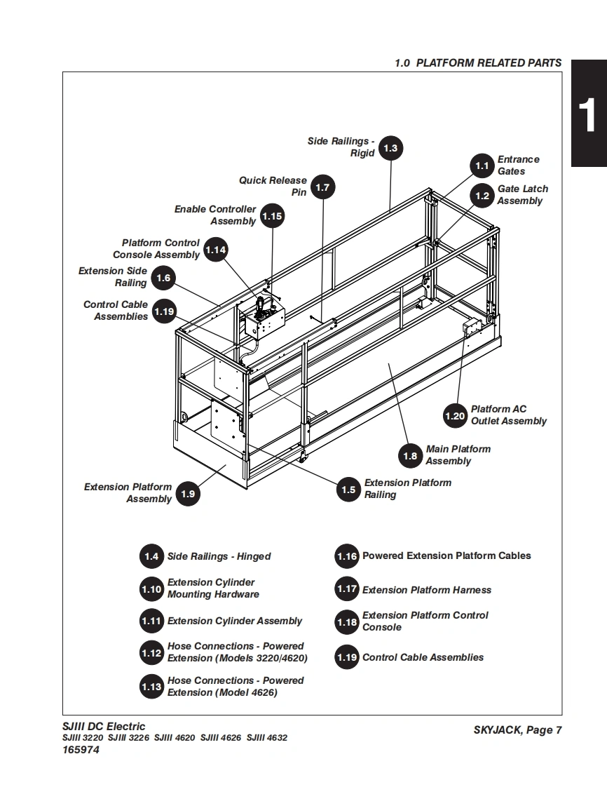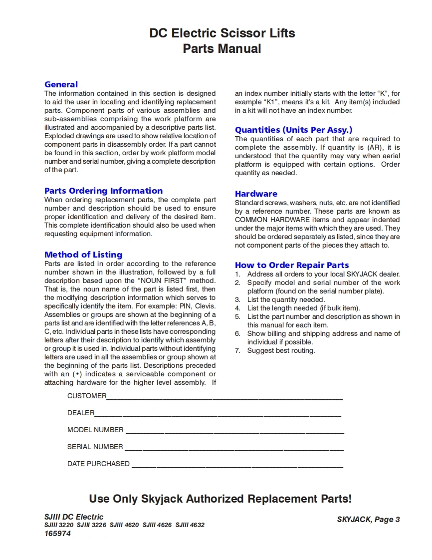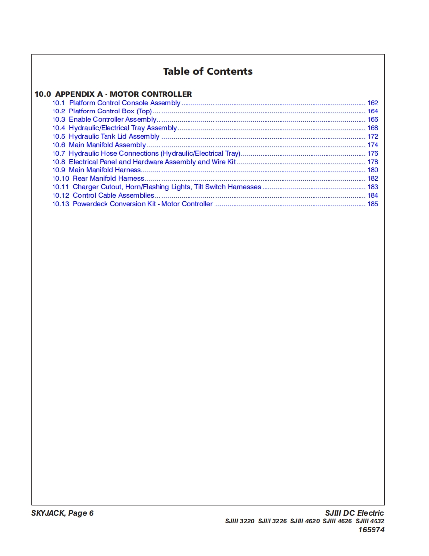 SKYACKIMPORTANTVerify if your machine is hydraulically proportional or motorcontrolled.Motor controller machines can be identified by the MC labellocated on the side of the machine or on the platform controlbox.For motor controller-specific parts and assemblies,see Section 10-Appendix A.