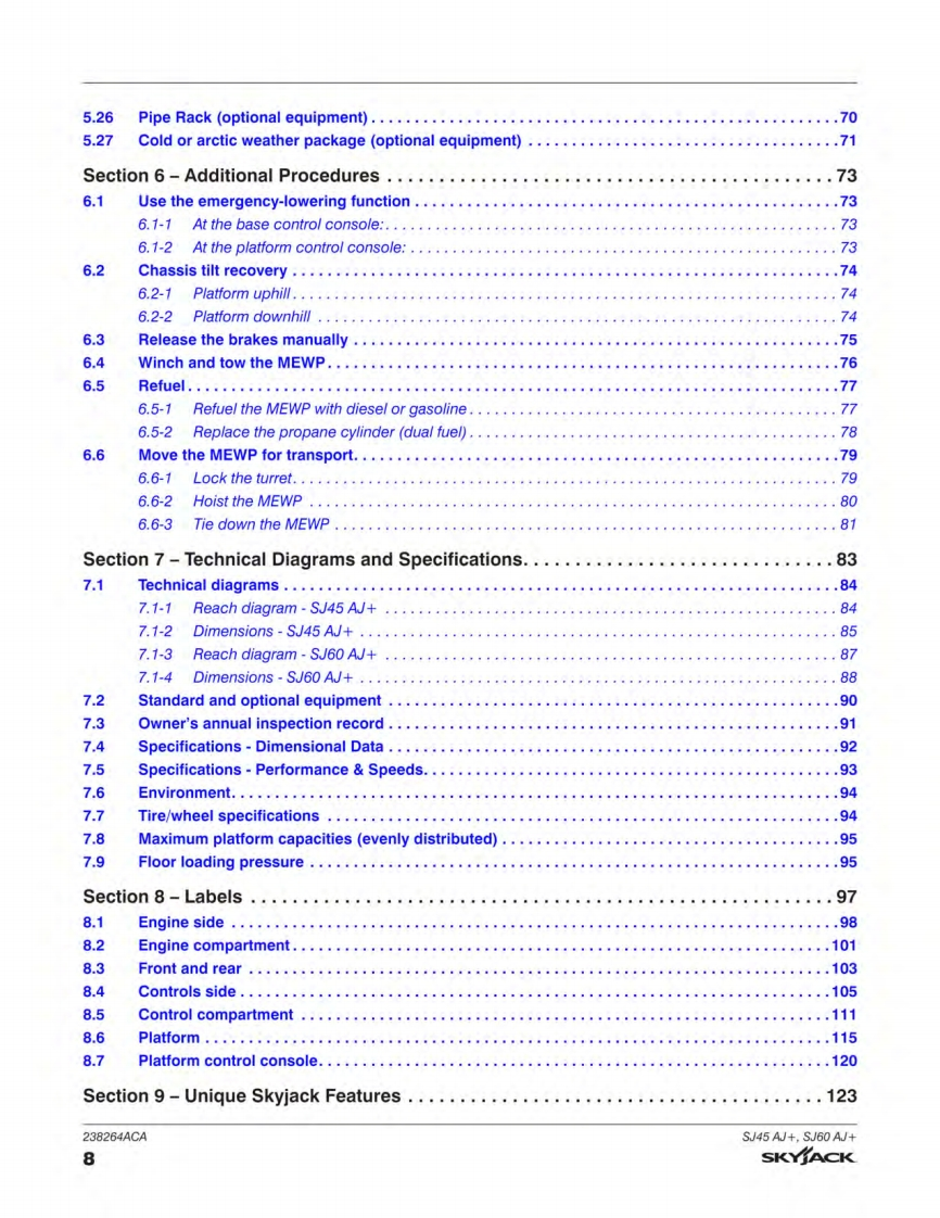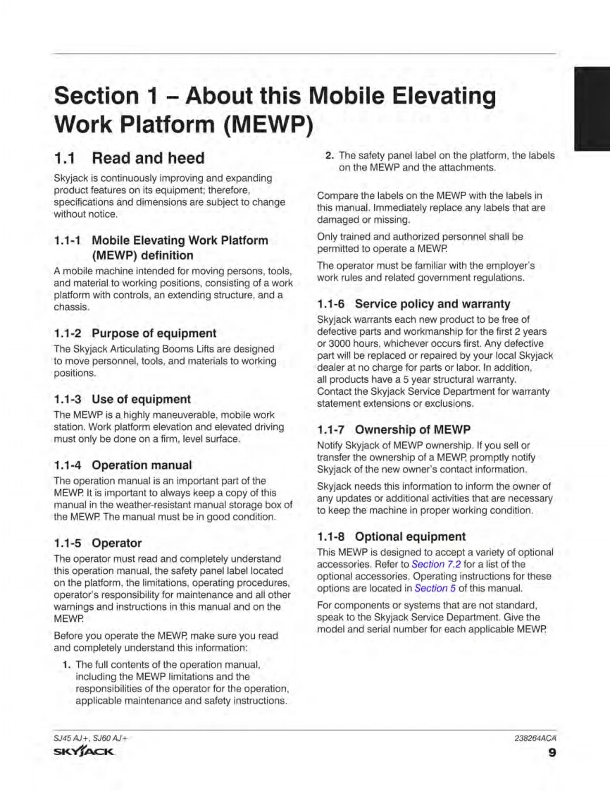 Skyjack-SJ45AJPlus-操作说明书手册找手册网1小时前发布关注私信8.20MB126页046Skyjack-SJ45AJPlus-操作说明书手册此内容为付费资源,请付费后查看¥29¥31黄金会员免费钻石会员免费立即购买您当前未登录!建议登陆后购买,可保存购买订单付费资源 第1页 / 共126页 第2页 / 共126页 第3页 / 共126页 第4页 / 共126页 第5页 / 共126页 第6页 / 共126页 第7页 / 共126页 第8页 / 共126页 第9页 / 共126页 第10页 / 共126页 试读已结束,还剩116页,您可下载完整版后进行离线阅读 THE ENDJCB/鼎力/诺力/Skyjack 文本预览 SKYACKOPERATIONMANUALSJ45 AJ+,SJ60 AJ+ARTICULATING BOOMS238264ACAFebruary 2022ANSI/CSA 查看更多 收起部分 喜欢就支持一下吧收藏