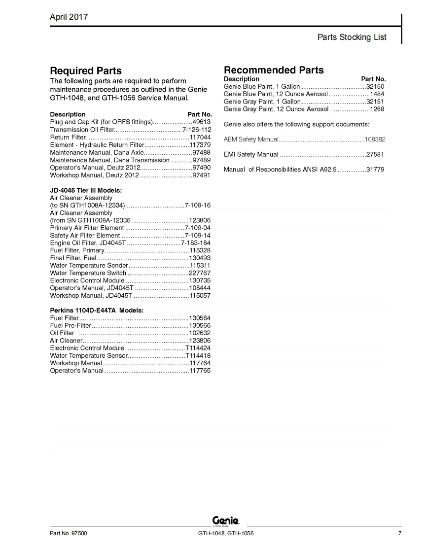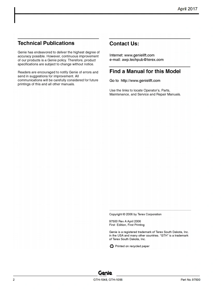 GENIE-GTH1056_零部件手册找手册网13小时前发布关注私信3.94MB290页024GENIE-GTH1056_零部件手册此内容为付费资源,请付费后查看¥29¥31黄金会员免费钻石会员免费立即购买您当前未登录!建议登陆后购买,可保存购买订单付费资源 第1页 / 共290页 第2页 / 共290页 第3页 / 共290页 第4页 / 共290页 第5页 / 共290页 第6页 / 共290页 第7页 / 共290页 第8页 / 共290页 第9页 / 共290页 第10页 / 共290页 试读已结束,还剩280页,您可下载完整版后进行离线阅读 THE ENDGenie/Aichi/Wacker 文本预览 GenieA TEREX BRANDParts ManualSerial Number RangeGTH-1048from SN GTH1006A-8418 toGTH1007A11442GTH-1056from SN GTH1006A-8418 toGTH1007A-11442Part No.97500Rev A9April 2017 查看更多 收起部分 喜欢就支持一下吧收藏