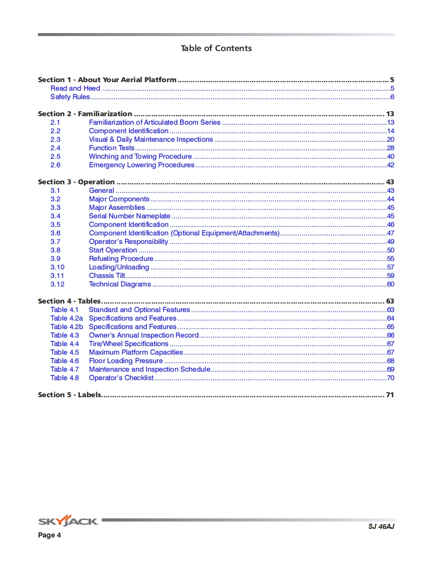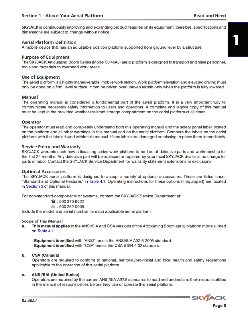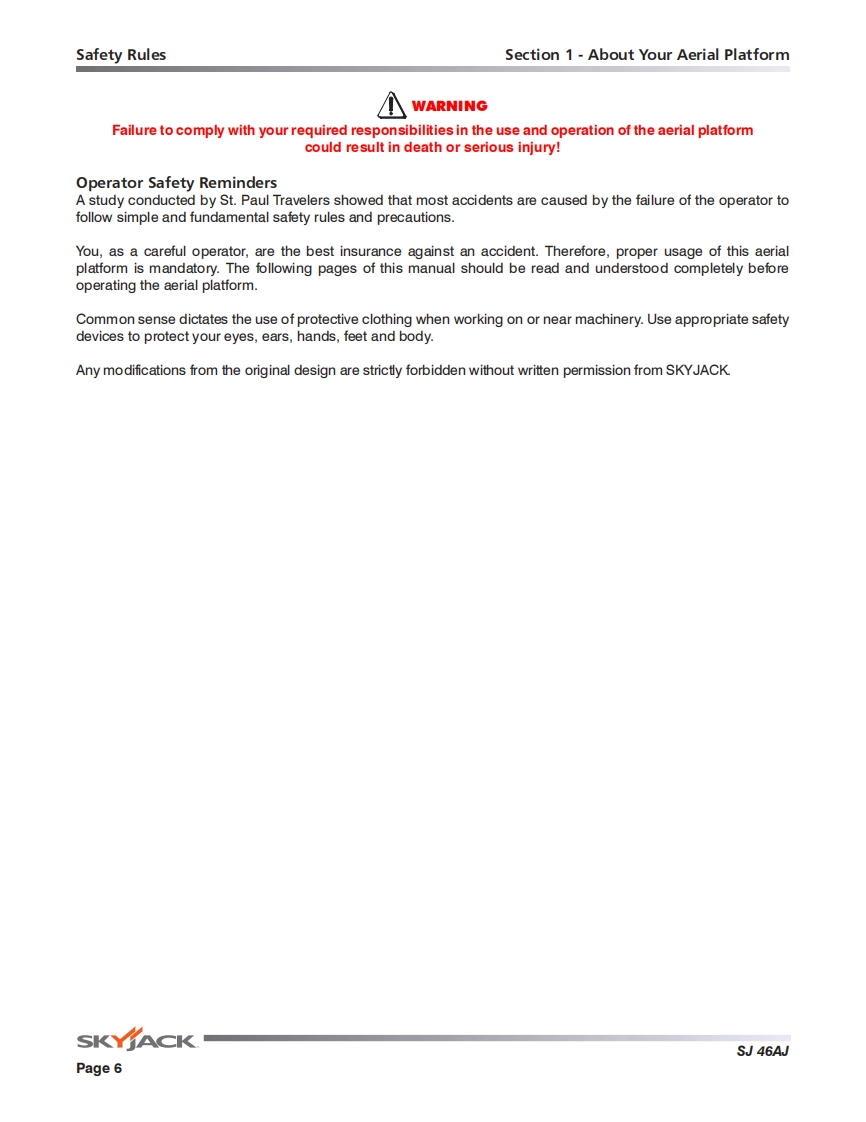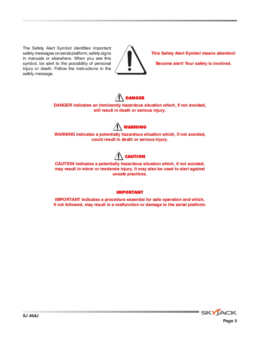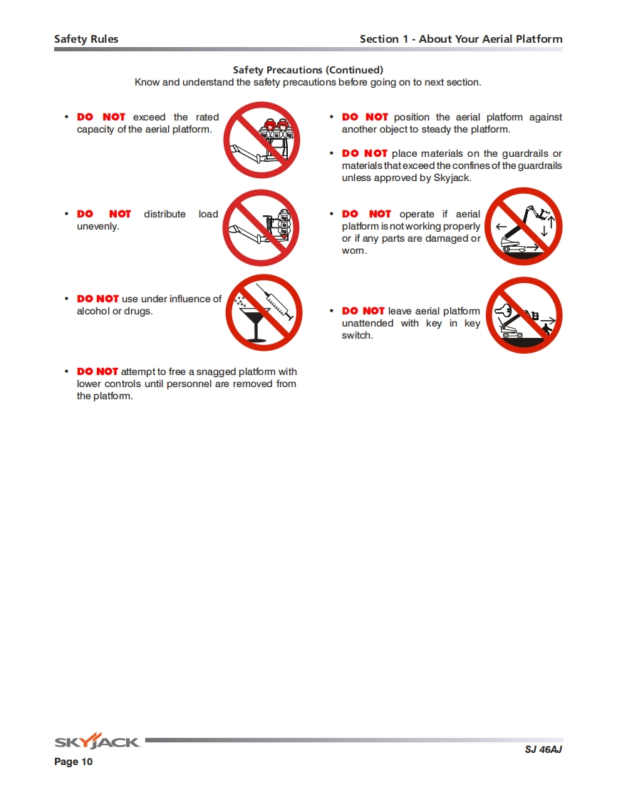 Skyjack-SJ46AJ_操作说明书手册找手册网3小时前发布关注私信25.35MB94页034Skyjack-SJ46AJ_操作说明书手册此内容为付费资源,请付费后查看¥29¥31黄金会员免费钻石会员免费立即购买您当前未登录!建议登陆后购买,可保存购买订单付费资源 第1页 / 共94页 第2页 / 共94页 第3页 / 共94页 第4页 / 共94页 第5页 / 共94页 第6页 / 共94页 第7页 / 共94页 第8页 / 共94页 第9页 / 共94页 第10页 / 共94页 试读已结束,还剩84页,您可下载完整版后进行离线阅读 THE ENDJCB/鼎力/诺力/Skyjack 文本预览 OPERATING MANUAL (ANSI/CSA)ARTICULATING BOOMSMODELS SJ46AJ169510AD-A November 2015SKY∥ACK 查看更多 收起部分 喜欢就支持一下吧收藏