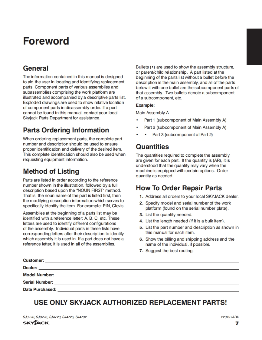 Skyjack-SJ4732-零部件手册找手册网9小时前发布关注私信14.99MB224页029Skyjack-SJ4732-零部件手册此内容为付费资源,请付费后查看¥29¥31黄金会员免费钻石会员免费立即购买您当前未登录!建议登陆后购买,可保存购买订单付费资源 第1页 / 共224页 第2页 / 共224页 第3页 / 共224页 第4页 / 共224页 第5页 / 共224页 第6页 / 共224页 第7页 / 共224页 第8页 / 共224页 第9页 / 共224页 第10页 / 共224页 试读已结束,还剩214页,您可下载完整版后进行离线阅读 THE ENDJCB/鼎力/诺力/Skyjack 文本预览 SKYACKPARTSMANUALSJ3220,SJ3226,SJ4720,SJ4726,SJ4732DC ELECTRIC SCISSORS223197ABAAugust 2020©ANSI/CSA,CE,AS,KC 查看更多 收起部分 喜欢就支持一下吧收藏