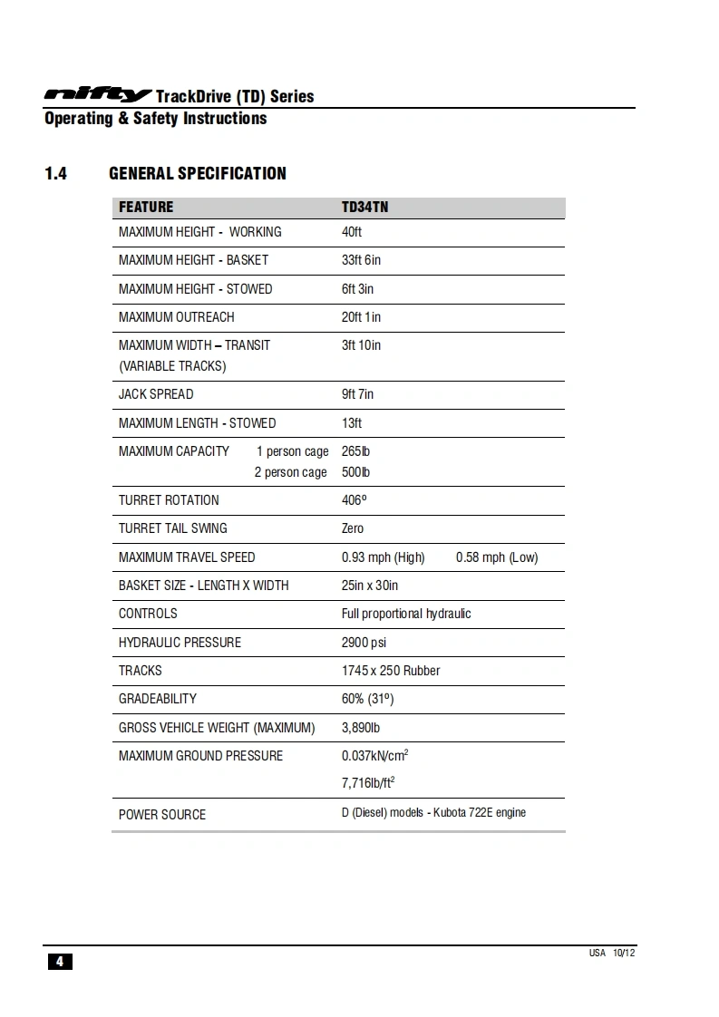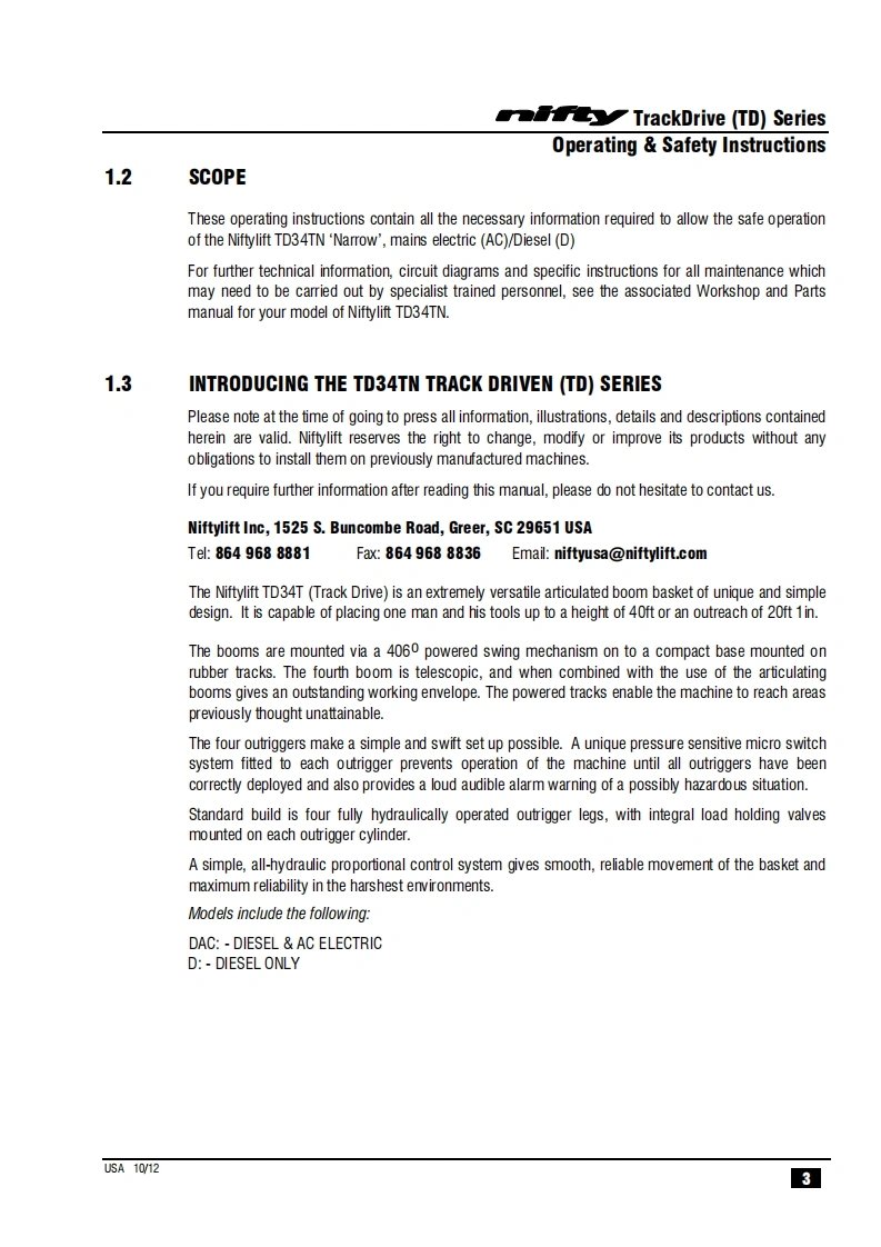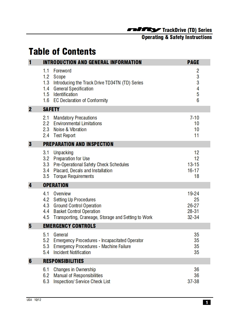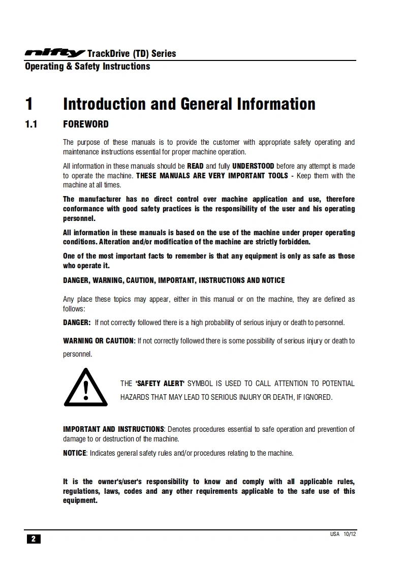 NIFTY-TD34TN_操作说明书手册找手册网3小时前发布关注私信1.02MB40页045NIFTY-TD34TN_操作说明书手册此内容为付费资源,请付费后查看¥29¥31黄金会员免费钻石会员免费立即购买您当前未登录!建议登陆后购买,可保存购买订单付费资源 第1页 / 共40页 第2页 / 共40页 第3页 / 共40页 第4页 / 共40页 第5页 / 共40页 第6页 / 共40页 第7页 / 共40页 第8页 / 共40页 第9页 / 共40页 第10页 / 共40页 试读已结束,还剩30页,您可下载完整版后进行离线阅读 THE END徐工/玉柴/Nifty 文本预览 TrackDriveOperating Safety InstructionsMODEL TD34TN SERIEST34TW®Niftylift Limited1525 S.Buncombe RoadGreerSC29651USAwww.niftylift.comnqa.e-mail:niftyusa@niftylift.com1509001Tel:864-968-8881RegisteredM50411/02015Fax864-968-8836 查看更多 收起部分 喜欢就支持一下吧收藏