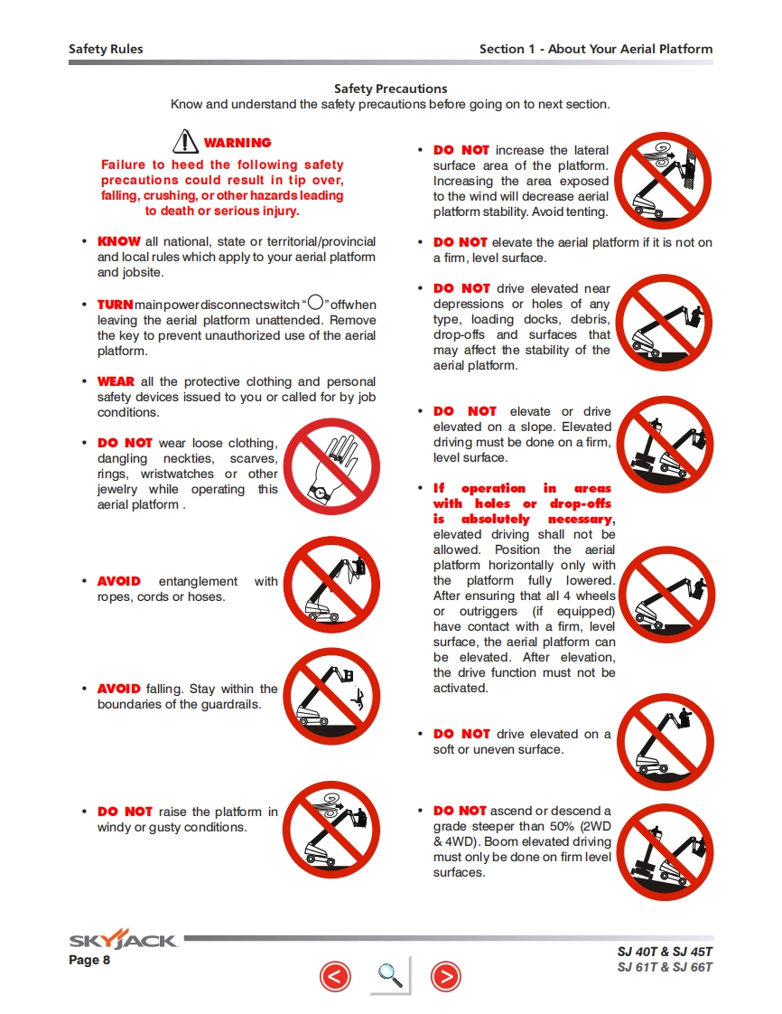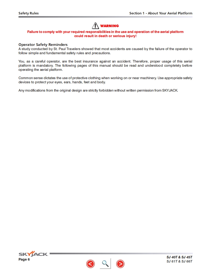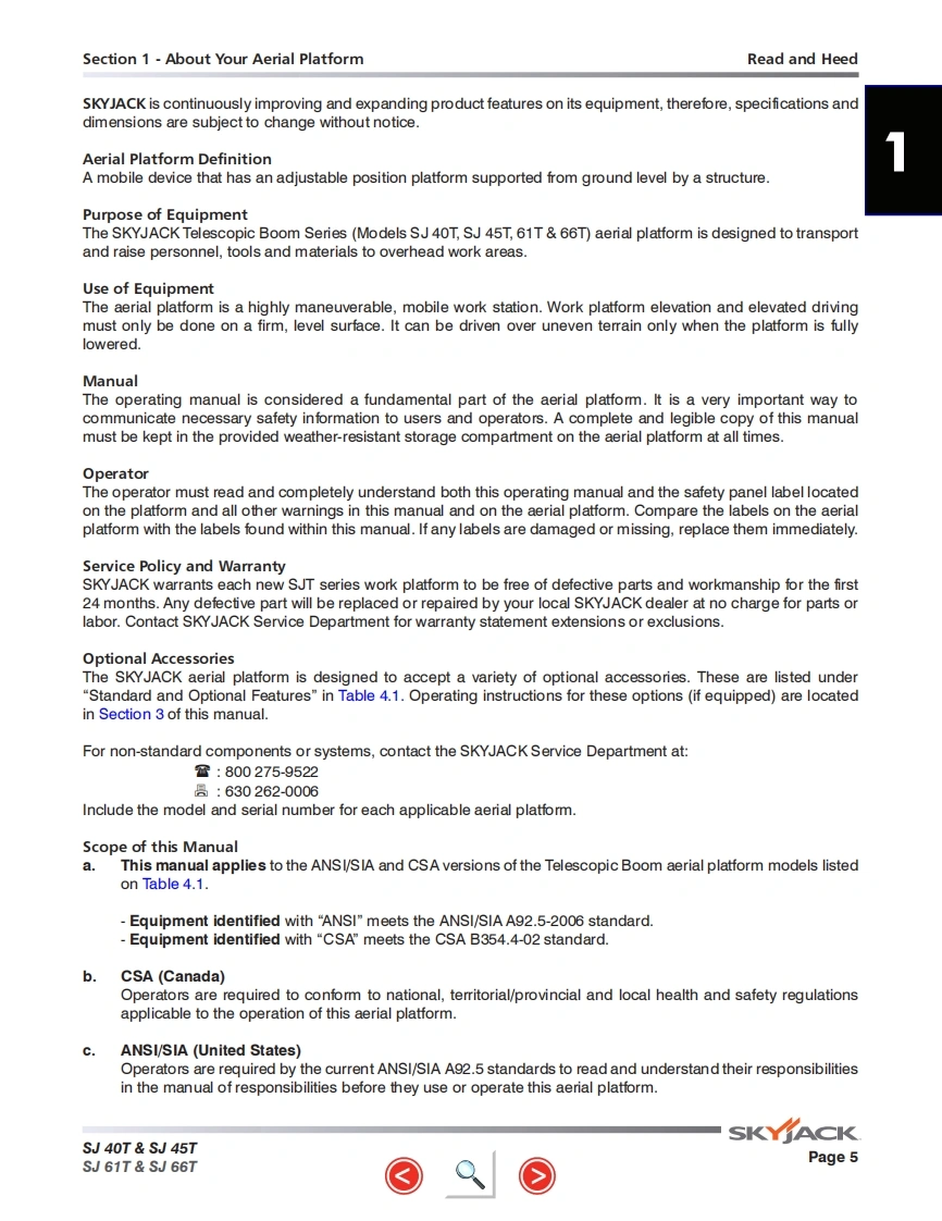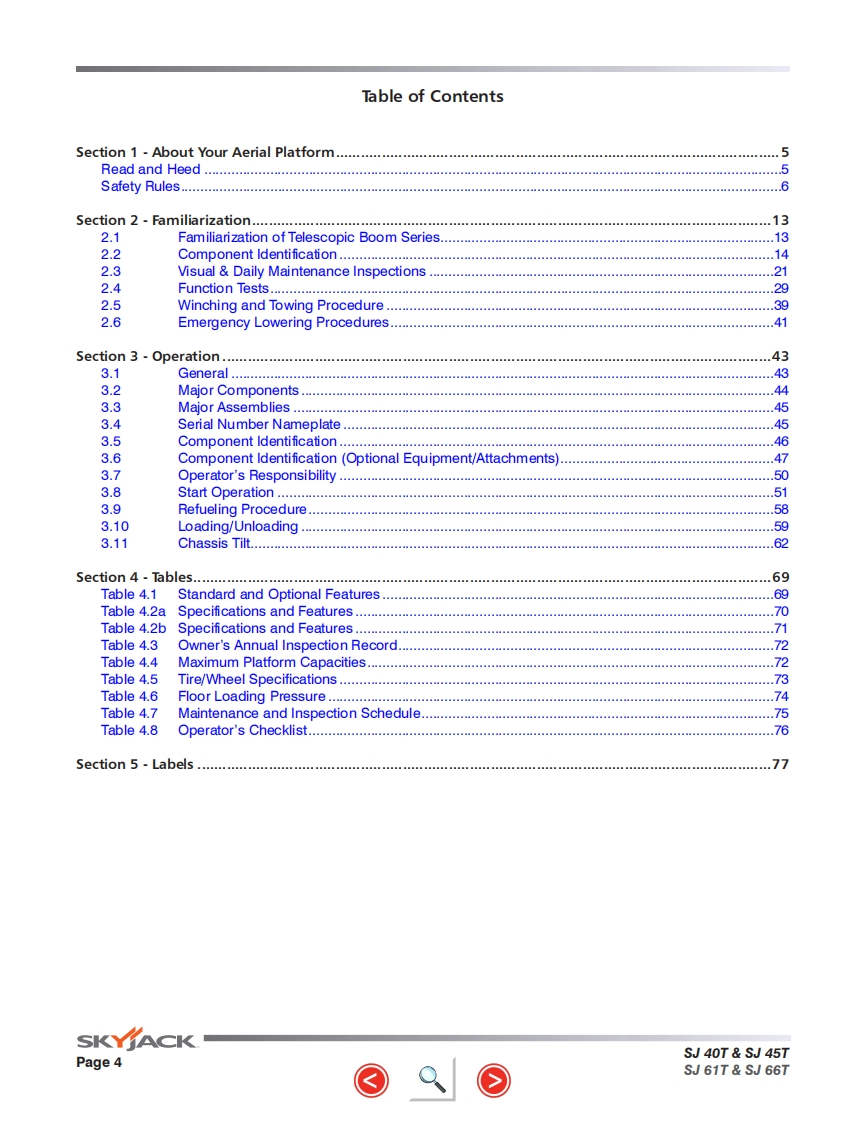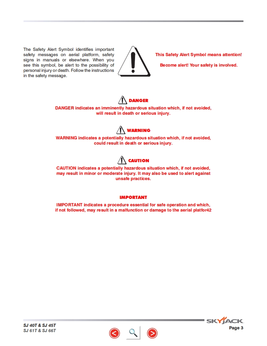 Skyjack-SJ61T_操作说明书手册找手册网7小时前发布关注私信29.66MB104页048Skyjack-SJ61T_操作说明书手册此内容为付费资源,请付费后查看¥29¥31黄金会员免费钻石会员免费立即购买您当前未登录!建议登陆后购买,可保存购买订单付费资源 第1页 / 共104页 第2页 / 共104页 第3页 / 共104页 第4页 / 共104页 第5页 / 共104页 第6页 / 共104页 第7页 / 共104页 第8页 / 共104页 第9页 / 共104页 第10页 / 共104页 试读已结束,还剩94页,您可下载完整版后进行离线阅读 THE ENDJCB/鼎力/诺力/Skyjack 文本预览 GP以S时d5SKfACOPERATING MANUAL (ANSI/CSA)TELESCOPIC BOOMSMODELS SJ40T SJ45T SJ61T SJ66T169269AF-A August 2016SKYACK 查看更多 收起部分 喜欢就支持一下吧收藏