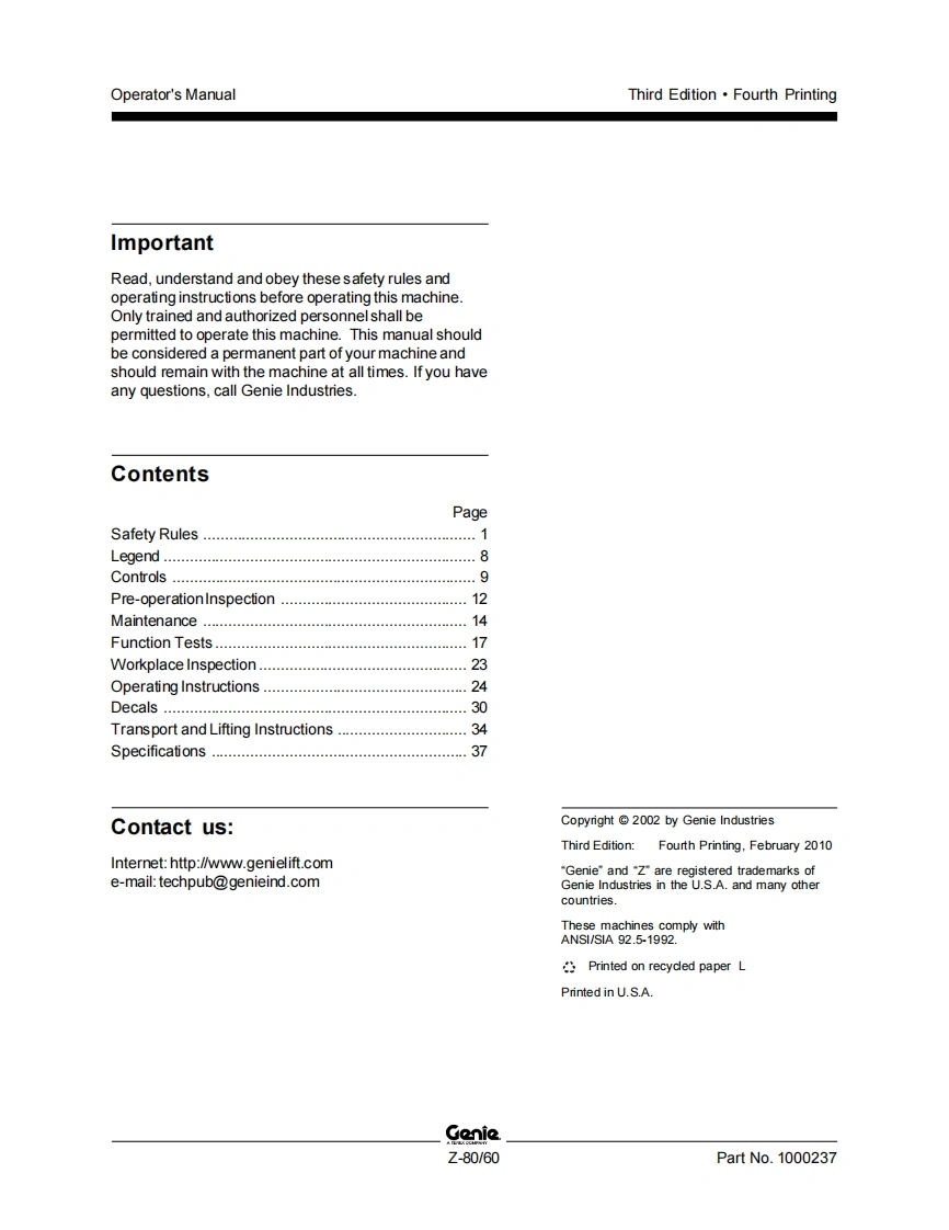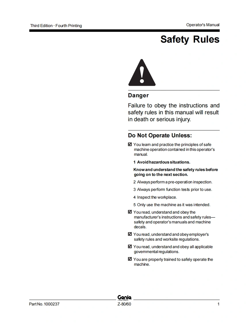GENIE-z8060-操作说明书手册找手册网12小时前发布关注私信0.64MB41页038GENIE-z8060-操作说明书手册此内容为付费资源,请付费后查看¥29¥31黄金会员免费钻石会员免费立即购买您当前未登录!建议登陆后购买,可保存购买订单付费资源 第1页 / 共41页 第2页 / 共41页 第3页 / 共41页 第4页 / 共41页 第5页 / 共41页 第6页 / 共41页 第7页 / 共41页 第8页 / 共41页 第9页 / 共41页 第10页 / 共41页 试读已结束,还剩31页,您可下载完整版后进行离线阅读 THE ENDGenie/Aichi/Wacker 文本预览 GenieOperator's ManualThird EditionFourth Printingwith Maintenance InformationPart No.1000237Z80/60from 801 to 2448 查看更多 收起部分 喜欢就支持一下吧收藏