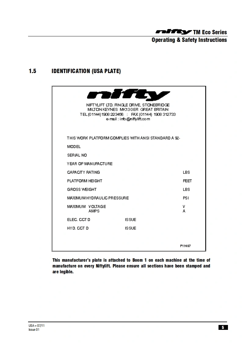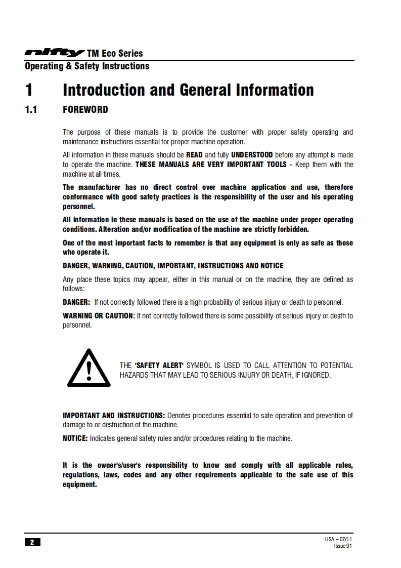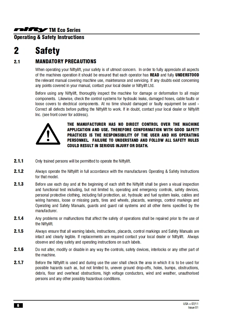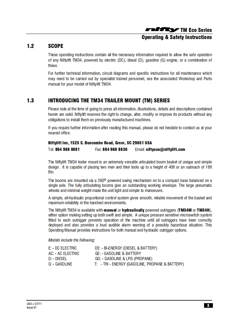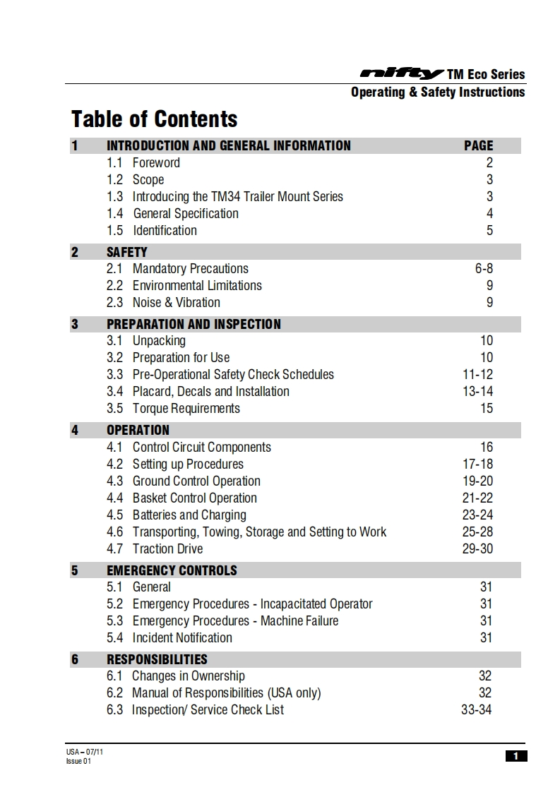 NIFTY-TM34MG-操作说明书手册找手册网3小时前发布关注私信0.44MB36页035NIFTY-TM34MG-操作说明书手册此内容为付费资源,请付费后查看¥29¥31黄金会员免费钻石会员免费立即购买您当前未登录!建议登陆后购买,可保存购买订单付费资源 第1页 / 共36页 第2页 / 共36页 第3页 / 共36页 第4页 / 共36页 第5页 / 共36页 第6页 / 共36页 第7页 / 共36页 第8页 / 共36页 第9页 / 共36页 第10页 / 共36页 试读已结束,还剩26页,您可下载完整版后进行离线阅读 THE END徐工/玉柴/Nifty 文本预览 TM34MOperating and Safety InstructionsMODEL TM34M ECO SERIES72TM34Niftylift Limited1525 S.Buncombe RoadGreerSC29651USA忠www.niftylift.comnqa.e-mail:niftyusa@niftyliftcom1509001RegisteredTel864-968-8881015Fax864-968-8836M50406/01 查看更多 收起部分 喜欢就支持一下吧收藏