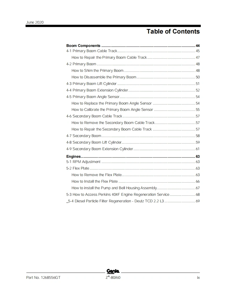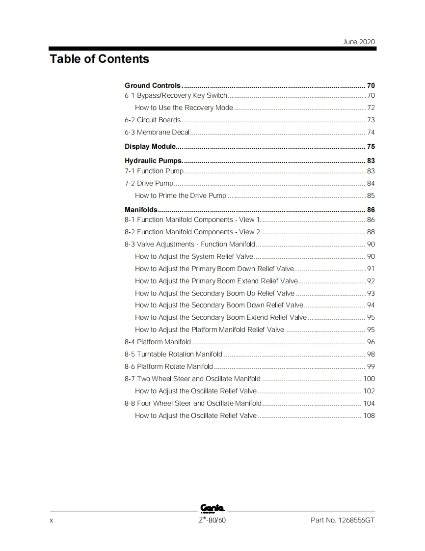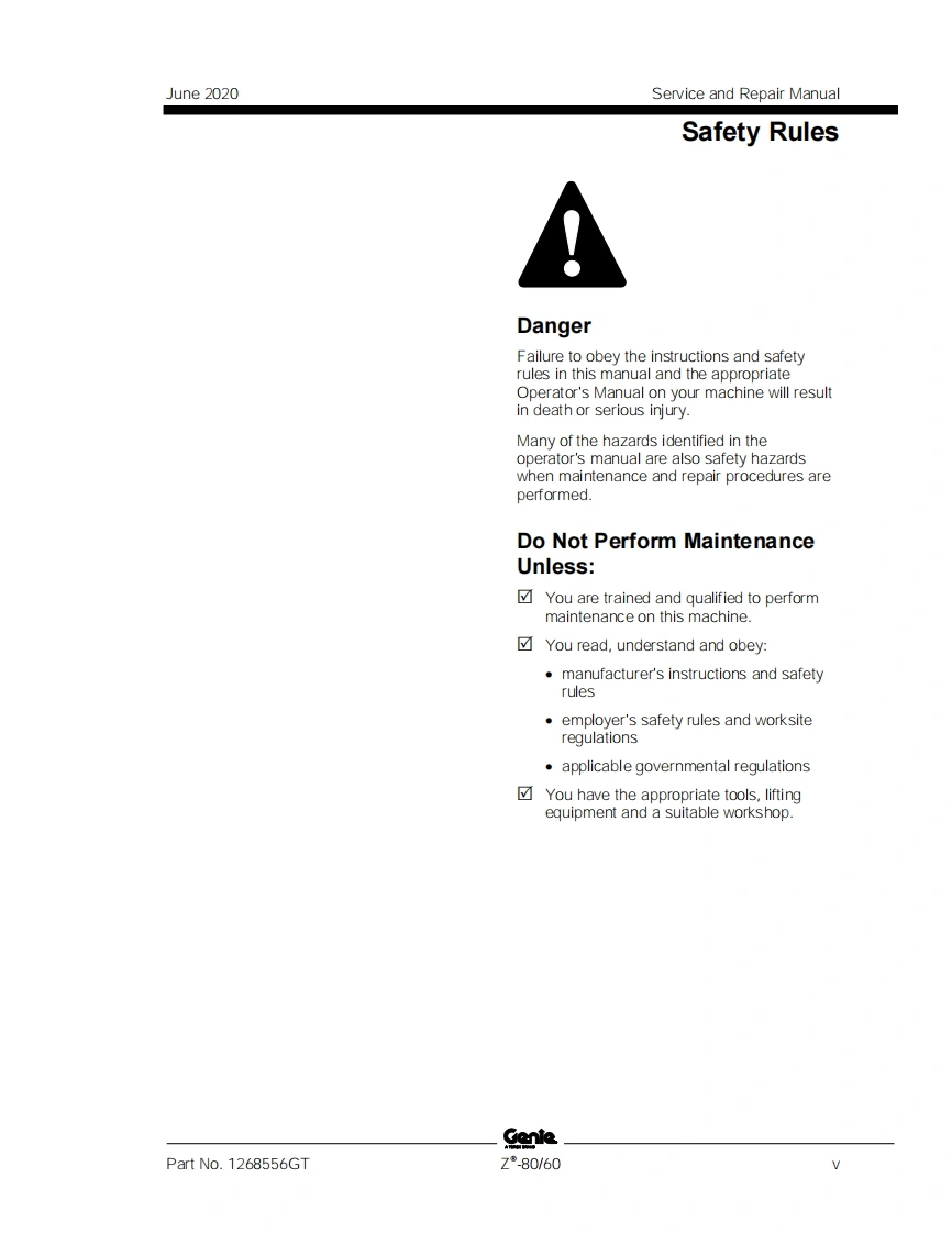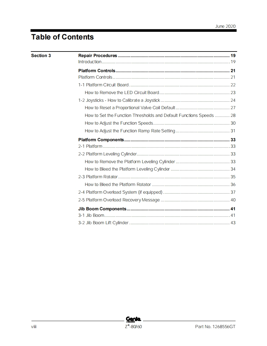 GenieA TEREX BRANDService and Repair ManualSerial Number Rangefrom Z8013-4592Z®-80/60toZ8016H-6399This manual includes:from Z80H-6400Repair proceduresFault CodesElectrical andHydraulic SchematicsFor detailed maintenanceprocedures,refer to theappropriate MaintenanceManual for your machine.Part No.1268556GTRev CJune 2020