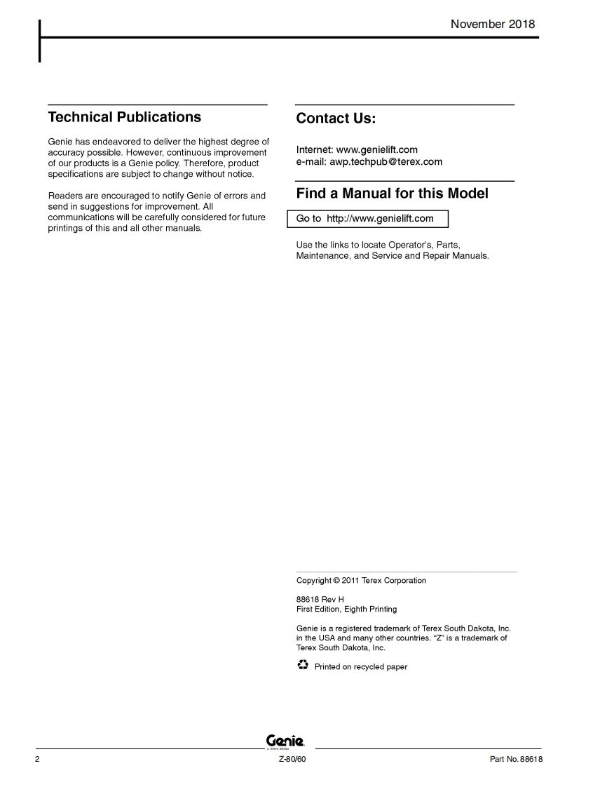 GENIE-z8060-零部件手册找手册网12小时前发布关注私信7.41MB350页036GENIE-z8060-零部件手册此内容为付费资源,请付费后查看¥29¥31黄金会员免费钻石会员免费立即购买您当前未登录!建议登陆后购买,可保存购买订单付费资源 第1页 / 共350页 第2页 / 共350页 第3页 / 共350页 第4页 / 共350页 第5页 / 共350页 第6页 / 共350页 第7页 / 共350页 第8页 / 共350页 第9页 / 共350页 第10页 / 共350页 试读已结束,还剩340页,您可下载完整版后进行离线阅读 THE ENDGenie/Aichi/Wacker 文本预览 GenieA TEREX BRANDParts ManualSerial Number RangeZ-80/60from SN Z8003-101 toZ8016-5829and from Z8016H-5830 toZ8016H-6399Part No.88618Rev H4November 2018 查看更多 收起部分 喜欢就支持一下吧收藏