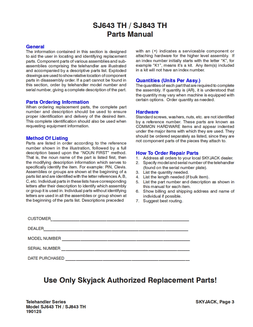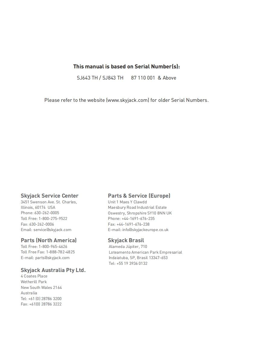 Skyjack-SJ643TH_零部件手册找手册网3小时前发布关注私信43.29MB286页031Skyjack-SJ643TH_零部件手册此内容为付费资源,请付费后查看¥29¥31黄金会员免费钻石会员免费立即购买您当前未登录!建议登陆后购买,可保存购买订单付费资源 第1页 / 共286页 第2页 / 共286页 第3页 / 共286页 第4页 / 共286页 第5页 / 共286页 第6页 / 共286页 第7页 / 共286页 第8页 / 共286页 第9页 / 共286页 第10页 / 共286页 试读已结束,还剩276页,您可下载完整版后进行离线阅读 THE ENDJCB/鼎力/诺力/Skyjack 文本预览 SKYTACKSKYSKYACKSJ843 THPARTS MANUAL (ANSI)TELEHANDLERSMODELS SJ643 TH /SJ843 TH190125AC March 2017SKYACK 查看更多 收起部分 喜欢就支持一下吧收藏