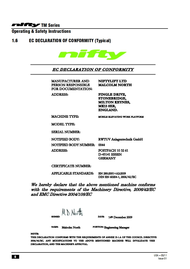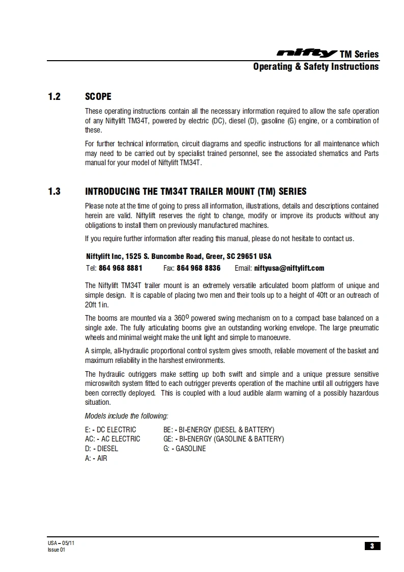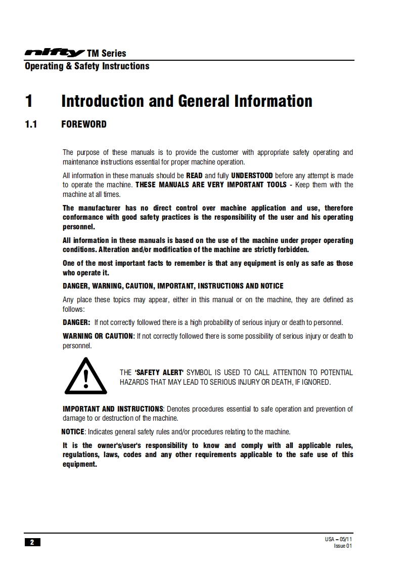 NIFTY-TM34_操作说明书手册找手册网3小时前发布关注私信0.76MB37页040NIFTY-TM34_操作说明书手册此内容为付费资源,请付费后查看¥29¥31黄金会员免费钻石会员免费立即购买您当前未登录!建议登陆后购买,可保存购买订单付费资源 第1页 / 共37页 第2页 / 共37页 第3页 / 共37页 第4页 / 共37页 第5页 / 共37页 第6页 / 共37页 第7页 / 共37页 第8页 / 共37页 第9页 / 共37页 第10页 / 共37页 试读已结束,还剩27页,您可下载完整版后进行离线阅读 THE END徐工/玉柴/Nifty 文本预览 TM34TOperating and Safety InstructionsMODEL TM34T SERIES习M347Niftylift Limited1525 S.Buncombe RoadGreerSC29651USAwww.niftylift.comnqa.e-mail:niftyusa@niftylift.com1509001Tel:864-968-8881RegisteredM50400/01015Fax:864-968-8836 查看更多 收起部分 喜欢就支持一下吧收藏