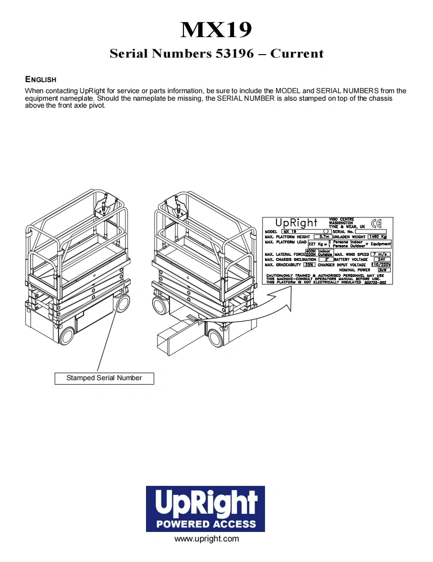 upright-mx19_sn_53196after维修与零部件说明书手册找手册网5小时前发布关注私信5.27MB86页050upright-mx19_sn_53196after维修与零部件说明书手册此内容为付费资源,请付费后查看¥29¥31黄金会员免费钻石会员免费立即购买您当前未登录!建议登陆后购买,可保存购买订单付费资源 第1页 / 共86页 第2页 / 共86页 第3页 / 共86页 第4页 / 共86页 第5页 / 共86页 第6页 / 共86页 第7页 / 共86页 第8页 / 共86页 第9页 / 共86页 第10页 / 共86页 试读已结束,还剩76页,您可下载完整版后进行离线阅读 THE END小松/陕汽/Upright 文本预览 UpRightPOWERED ACCESSpg#1X智UpRightMX19WORK PLATFORM 查看更多 收起部分 喜欢就支持一下吧收藏