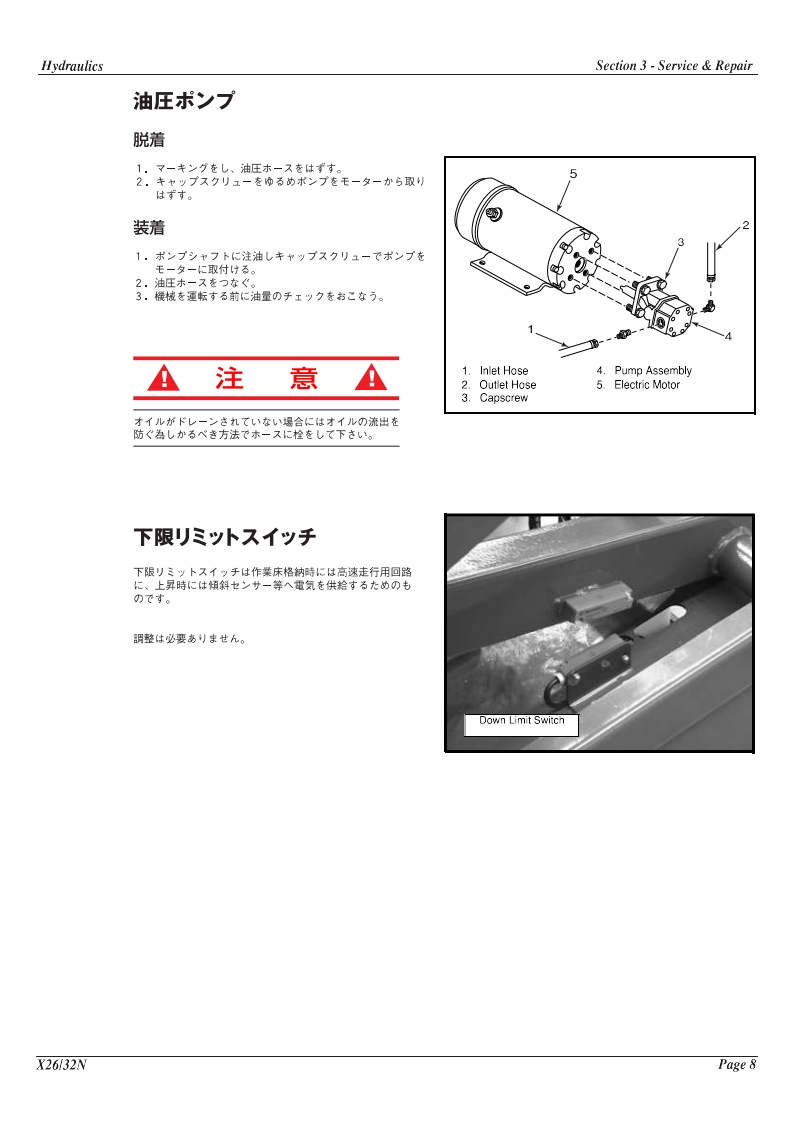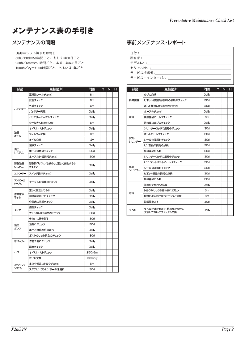 upright-X32维修与零部件说明书手册找手册网2小时前发布关注私信2.78MB29页041upright-X32维修与零部件说明书手册此内容为付费资源,请付费后查看¥29¥31黄金会员免费钻石会员免费立即购买您当前未登录!建议登陆后购买,可保存购买订单付费资源 第1页 / 共29页 第2页 / 共29页 第3页 / 共29页 第4页 / 共29页 第5页 / 共29页 第6页 / 共29页 第7页 / 共29页 第8页 / 共29页 第9页 / 共29页 第10页 / 共29页 试读已结束,还剩19页,您可下载完整版后进行离线阅读 THE END小松/陕汽/Upright 文本预览 X26NX32NSERIESWorkPlatforms2UpRight☒2NUpRightService Parts Manual步一又/心一以マ二3了儿機械)点検、修理左行在)際.本マ二ュ了儿左良〈壳理解儿(6行在2(下è。 查看更多 收起部分 喜欢就支持一下吧收藏
