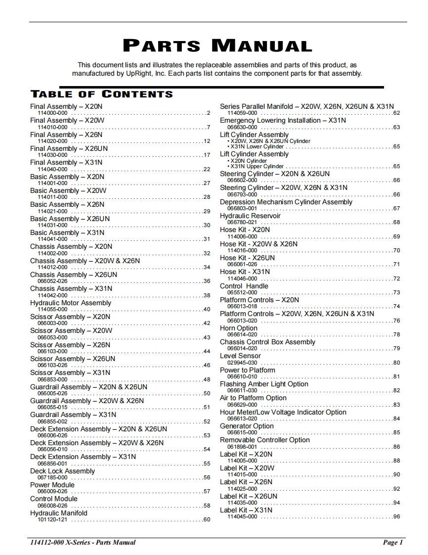 upright-xseries_sn_20000after维修与零部件说明书手册找手册网2小时前发布关注私信4.03MB102页029upright-xseries_sn_20000after维修与零部件说明书手册此内容为付费资源,请付费后查看¥29¥31黄金会员免费钻石会员免费立即购买您当前未登录!建议登陆后购买,可保存购买订单付费资源 第1页 / 共102页 第2页 / 共102页 第3页 / 共102页 第4页 / 共102页 第5页 / 共102页 第6页 / 共102页 第7页 / 共102页 第8页 / 共102页 第9页 / 共102页 第10页 / 共102页 试读已结束,还剩92页,您可下载完整版后进行离线阅读 THE END小松/陕汽/Upright 文本预览 PartsManualX-SeriesSerial Numbers 20000-CurrentPublication Number:114112-000UpRight 查看更多 收起部分 喜欢就支持一下吧收藏