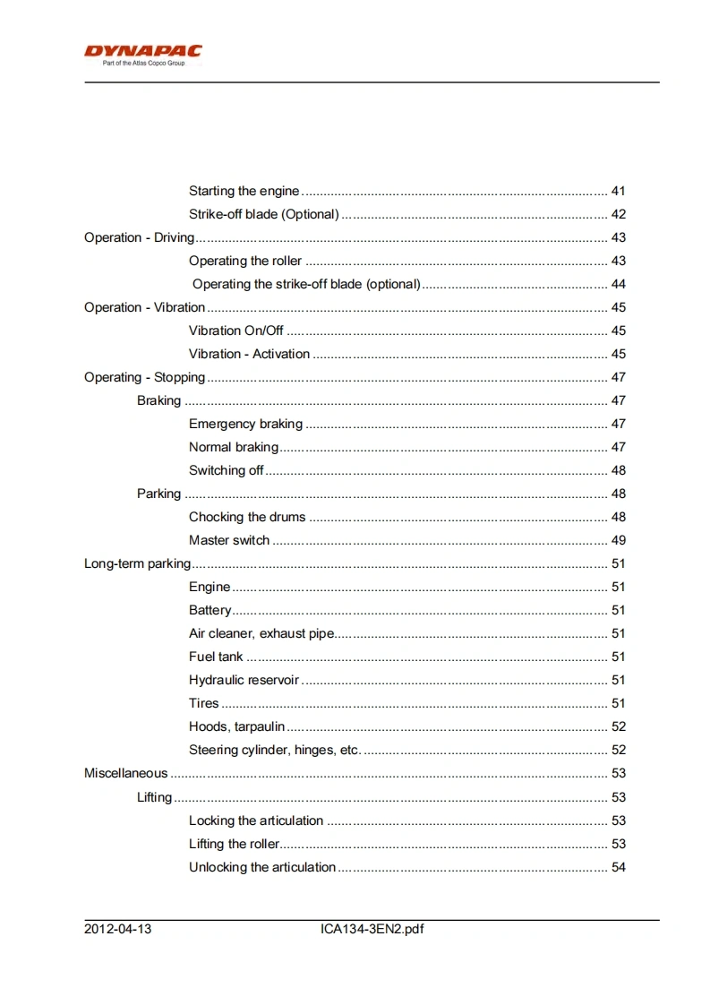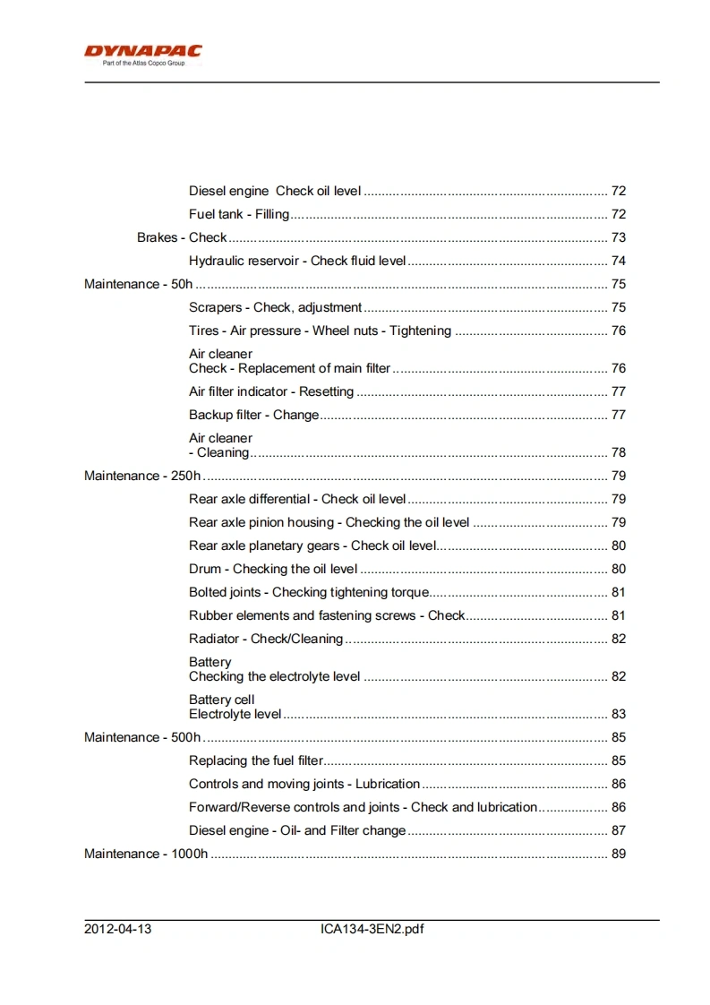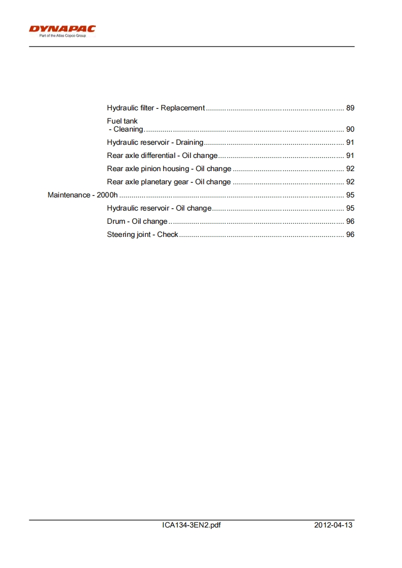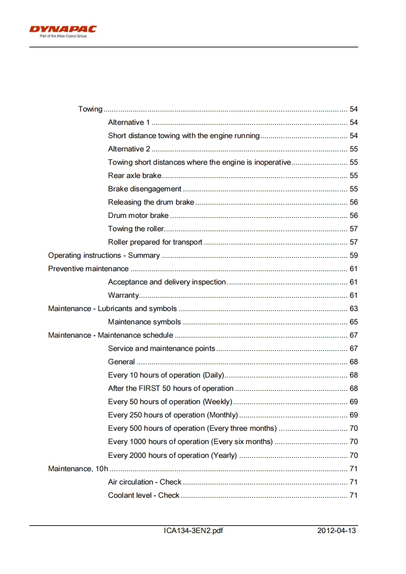 DYNAPACPart of the Atlas Copco GroupInstructions manualICA134-3EN2.pdfDriving MaintenanceVibratory rollerCA134EngineJohn Deere 5030HF285Serial number10000100x0A009546-DYNAPACDYNAPACTranslation of original instructionReservation for changesPrinted in Sweden