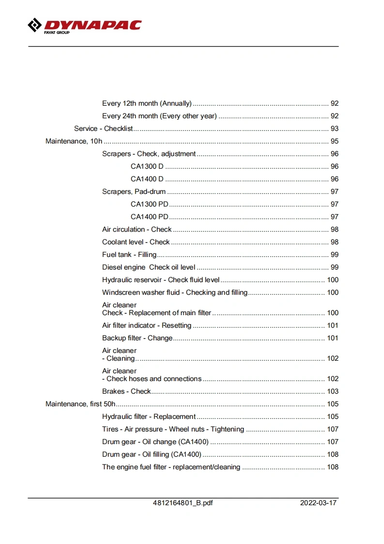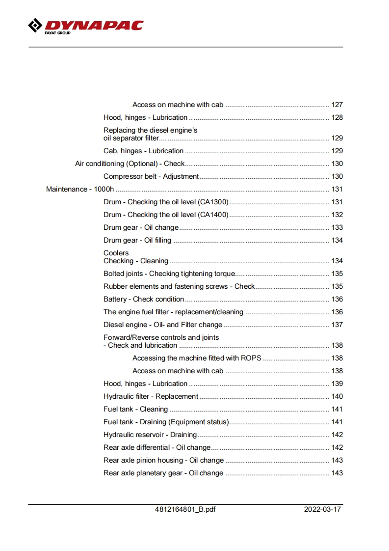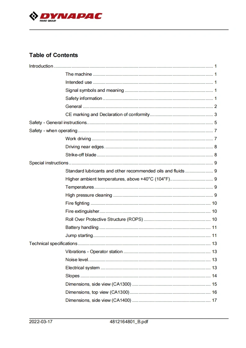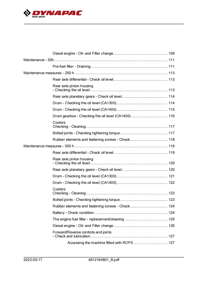 DVMAPACFAYAT GROUPInstruction manualOperating Maintenance4812164801B.pdfVibratory rollerCA1300-CA1400 D/PDEngineKubota V3307-CR-TE4B(IlIB/Tier 4f)Kubota V3307-CR-TE5B(Stage V)Serial number10000159XXA031263-10000185xA030910-10000169A031137-10000186xA031268-Translation of original instructionReservation for changesPrinted in SwedenEN