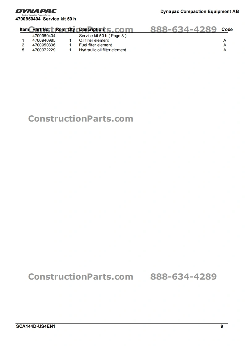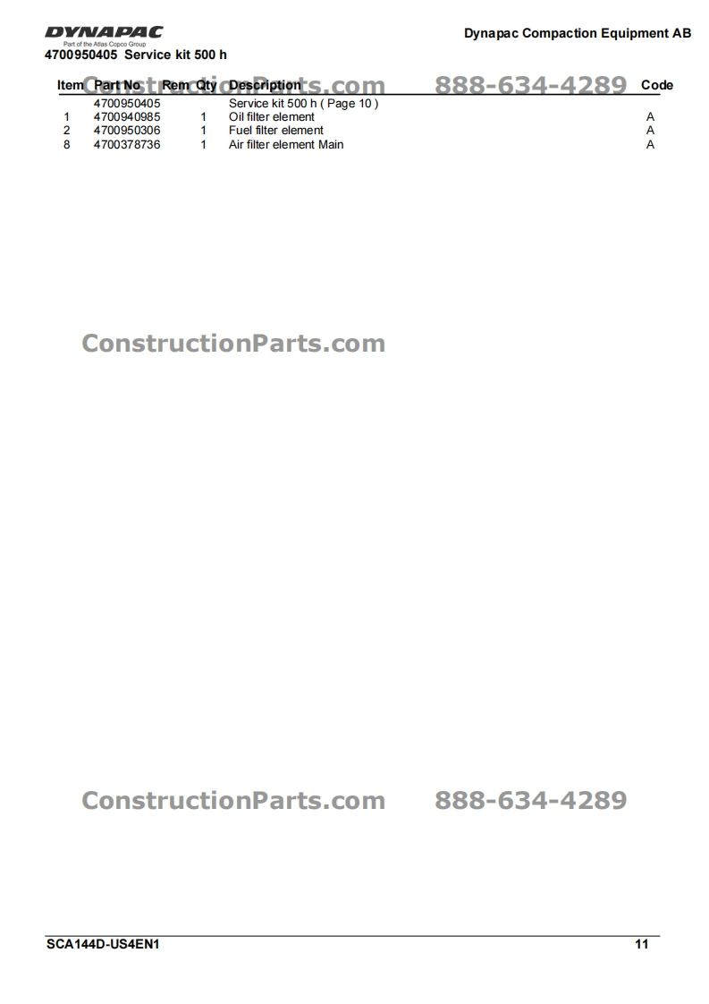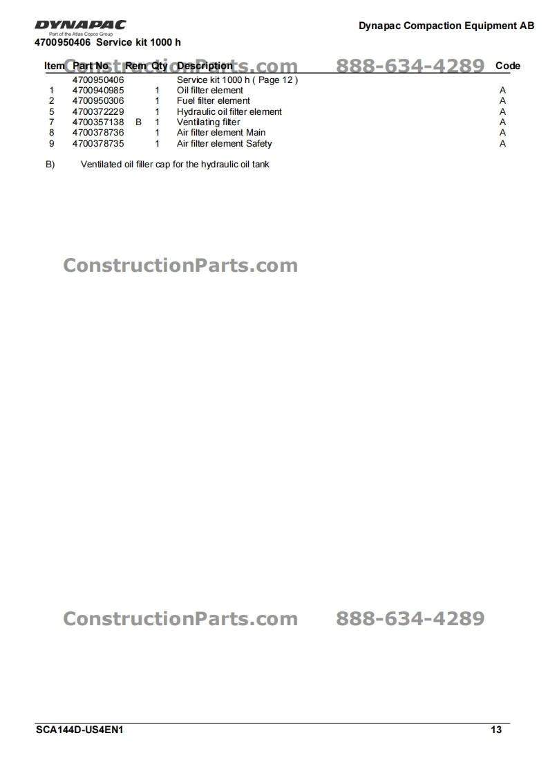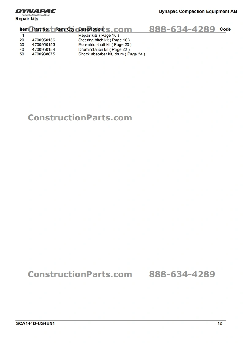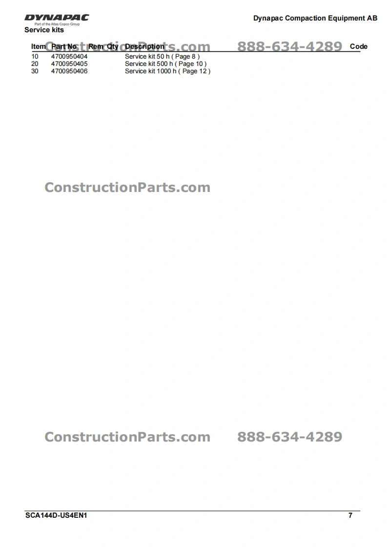 Vibratory RollerDVNAPACCA144DPart of the Atlas Copco GroupConstructionParts.com888-634-4289Spare Parts CatalogueSCA144D-US4EN1Valid from roller serial number:10000101x0D000001-ConstructionParts.comDYNAPACDYNAPACDiesel engine:John Deere 5030HF285Published catalogue issues valid for these rollers:CatalogueIssue dateValid for serial numbersSCA144D-US4EN12010-0510000101x0D000001-ConstructionParts.com888-634-4289We reserve the right to change specifications without noticePrinted in Sweden.