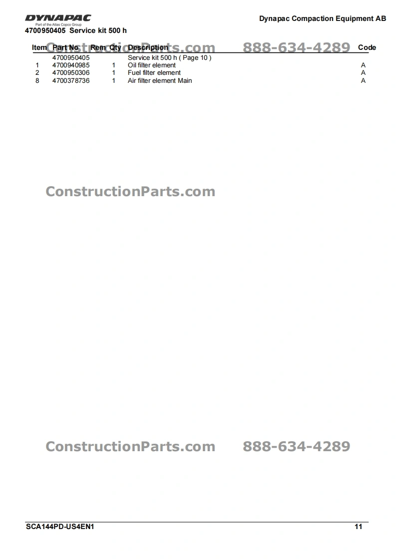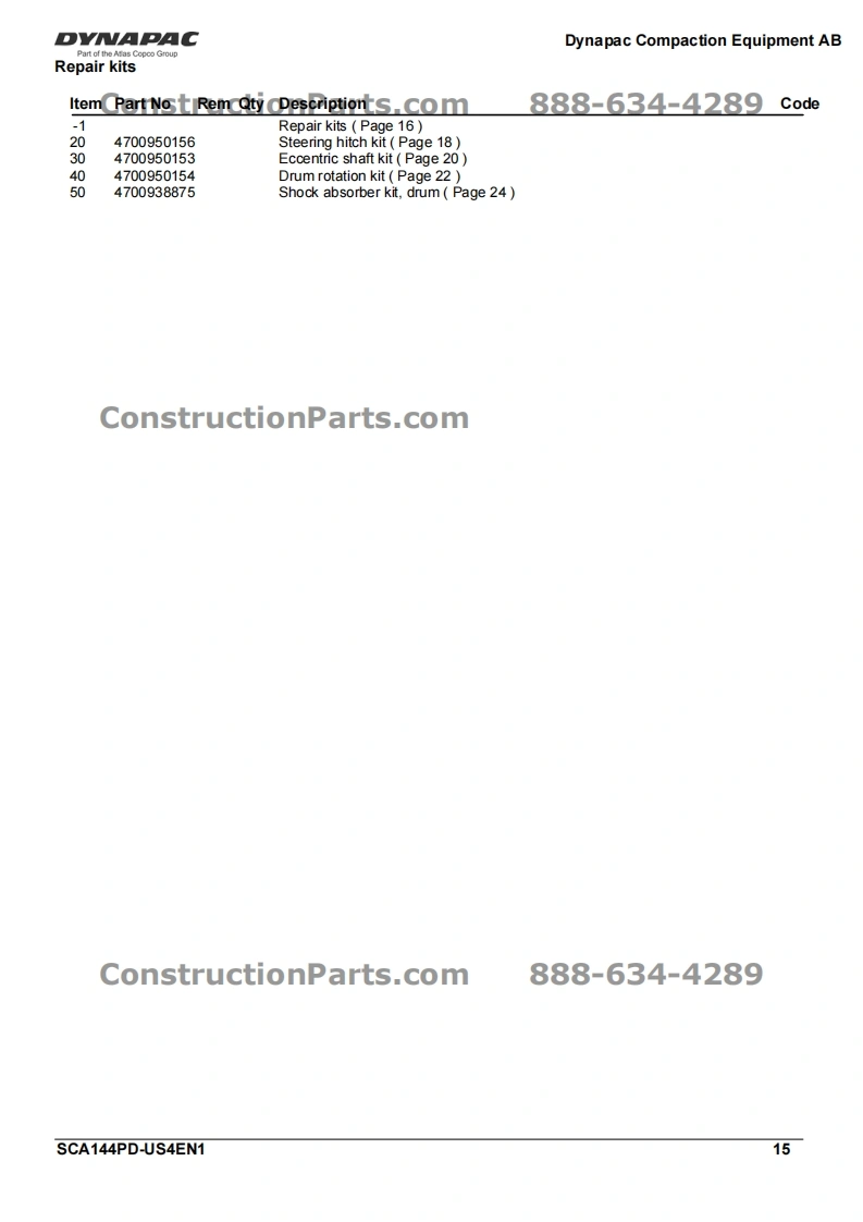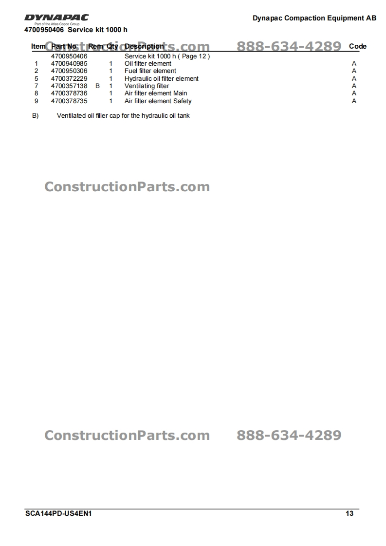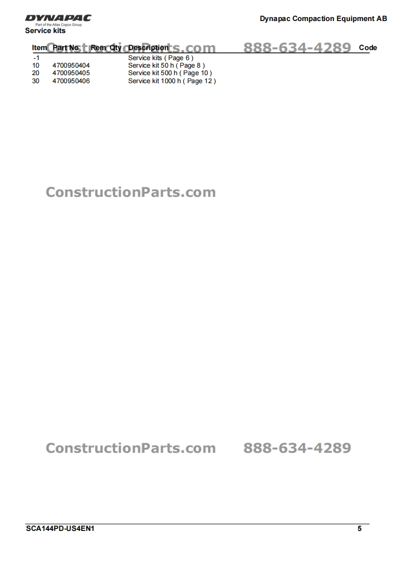 Vibratory RollerDYNAPACCA144PDPart of the Atlas Copco GroupConstructionParts.com888-634-4289Spare Parts CatalogueSCA144PD-US4EN1Valid from roller serial number:10000101x0D000001-ConstructionParts.comDiesel engine:John Deere 5030HF285Published catalogue issues valid for these rollers:CatalogueIssue dateValid for serial numbersSCA144PD-US4EN1 2010-0510000101x0D000001-ConstructionParts.com888-634-4289We reserve the right to change specifications without noticePrinted in Sweden.