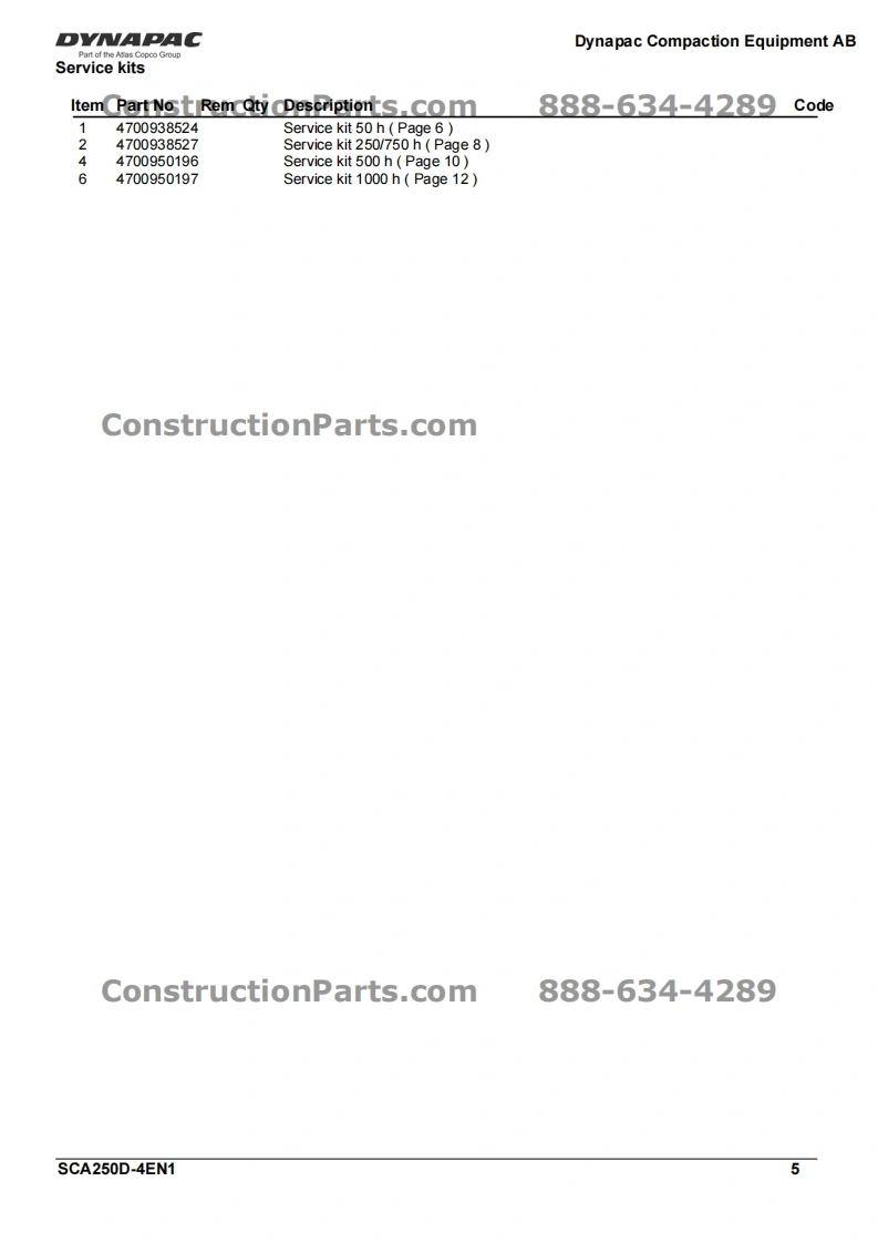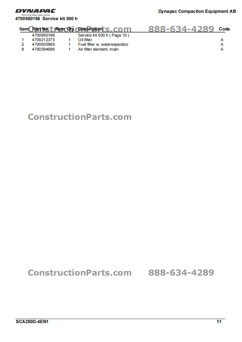 Vibratory Roller⊙YNAPACCA250DPart of the Atlas Copco GroupConstructionParts.com888-634-4289Spare Parts CatalogueSCA250D-4EN1Valid from roller serial number:10000107x0A000001-ConstructionPartsDYNAPACDiesel engines:Cummins 4BTA 3.9CPublished catalogue issues valid for these rollers:CatalogueIssue dateValid for serial numbersSCA250D-4EN12010-0310000107x0A000001-ConstructionParts.com888-634-4289We reserve the right to change specifications without noticePrinted in Sweden.