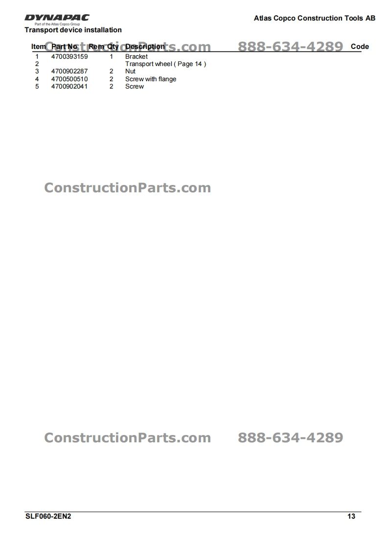 戴纳派克DYNAPAC-SLF060零部件手册找手册网19天前发布关注私信0.21MB37页048戴纳派克DYNAPAC-SLF060零部件手册此内容为付费资源,请付费后查看¥29¥31黄金会员免费钻石会员免费登录购买付费资源 第1页 / 共37页 第2页 / 共37页 第3页 / 共37页 第4页 / 共37页 第5页 / 共37页 第6页 / 共37页 第7页 / 共37页 第8页 / 共37页 第9页 / 共37页 第10页 / 共37页 试读已结束,还剩27页,您可下载完整版后进行离线阅读 THE END约翰迪尔/戴纳派克 文本预览 DYNAPACAtlas Copco Construction Tools ABEccentric element installation18600-ConstructionParts.com888-634-4289ConstructionParts.com6T-3ConstructionParts.com888-634-42896SLF060-2EN2 查看更多 收起部分 喜欢就支持一下吧收藏