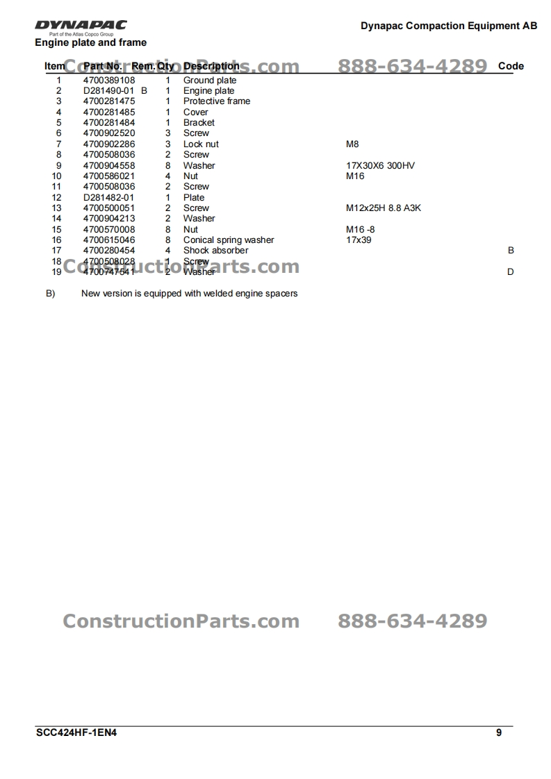 戴纳派克DYNAPAC-SLG500零部件手册找手册网19天前发布关注私信0.30MB51页044戴纳派克DYNAPAC-SLG500零部件手册此内容为付费资源,请付费后查看¥29¥31黄金会员免费钻石会员免费登录购买付费资源 第1页 / 共51页 第2页 / 共51页 第3页 / 共51页 第4页 / 共51页 第5页 / 共51页 第6页 / 共51页 第7页 / 共51页 第8页 / 共51页 第9页 / 共51页 第10页 / 共51页 试读已结束,还剩41页,您可下载完整版后进行离线阅读 THE END约翰迪尔/戴纳派克 文本预览 DYNAPACDynapac Compaction Equipment ABEngine plate and frame1606ConstructionParts.com888-634-42897ConstructionParts.com27141016191822713129161015182919-281216888-634-4289216SCC424HF-1EN4 查看更多 收起部分 喜欢就支持一下吧收藏