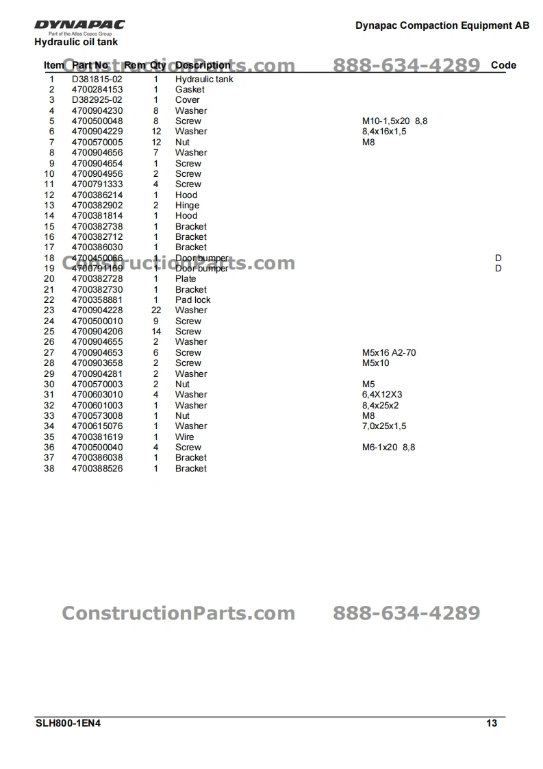 戴纳派克DYNAPAC-SLH800零部件手册找手册网19天前发布关注私信0.29MB43页028戴纳派克DYNAPAC-SLH800零部件手册此内容为付费资源,请付费后查看¥29¥31黄金会员免费钻石会员免费登录购买付费资源 第1页 / 共43页 第2页 / 共43页 第3页 / 共43页 第4页 / 共43页 第5页 / 共43页 第6页 / 共43页 第7页 / 共43页 第8页 / 共43页 第9页 / 共43页 第10页 / 共43页 试读已结束,还剩33页,您可下载完整版后进行离线阅读 THE END约翰迪尔/戴纳派克 文本预览 DYNAPACDynapac Compaction Equipment ABGround plate,engine plate and frame17276-ConstructionParts.com888-634-428927223023-2520241937ConstructionPa s.com2832337334C一88-634-42890-一10116SLH800-1EN4 查看更多 收起部分 喜欢就支持一下吧收藏