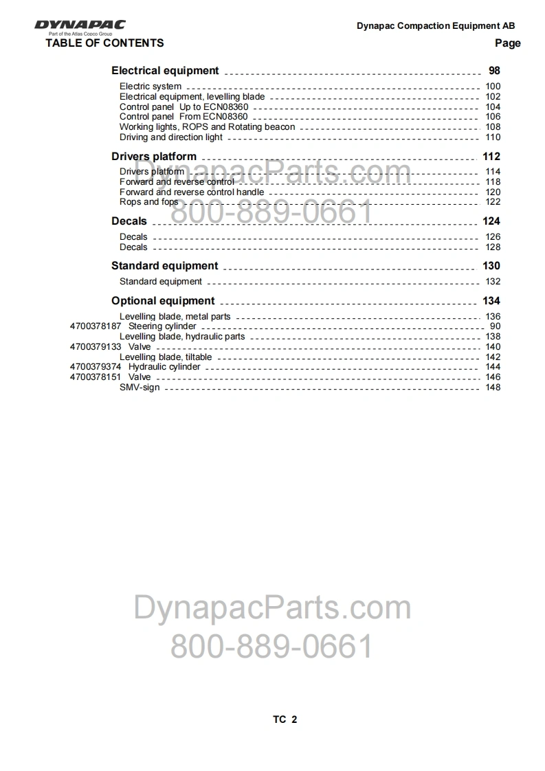 戴纳派克DYNAPACCA-134-Spare-Parts-Catalogue-SCA134PD-US3EN2零部件手册找手册网19天前发布关注私信2.09MB165页021戴纳派克DYNAPACCA-134-Spare-Parts-Catalogue-SCA134PD-US3EN2零部件手册此内容为付费资源,请付费后查看¥29¥31黄金会员免费钻石会员免费登录购买付费资源 第1页 / 共165页 第2页 / 共165页 第3页 / 共165页 第4页 / 共165页 第5页 / 共165页 第6页 / 共165页 第7页 / 共165页 第8页 / 共165页 第9页 / 共165页 第10页 / 共165页 试读已结束,还剩155页,您可下载完整版后进行离线阅读 THE END约翰迪尔/戴纳派克 文本预览 DYNAPACCA134PDSPARE PARTSDynCATALOGUEOm8SCA134PD-US3EN2之NDynapacParts.com80b80paG61Part of the Atlas Copco GroupBox504,SE-37123 Karlskrona,SwedenPh0ne:+46455306000,Fax:+46455306010www.dynapac.com 查看更多 收起部分 喜欢就支持一下吧收藏