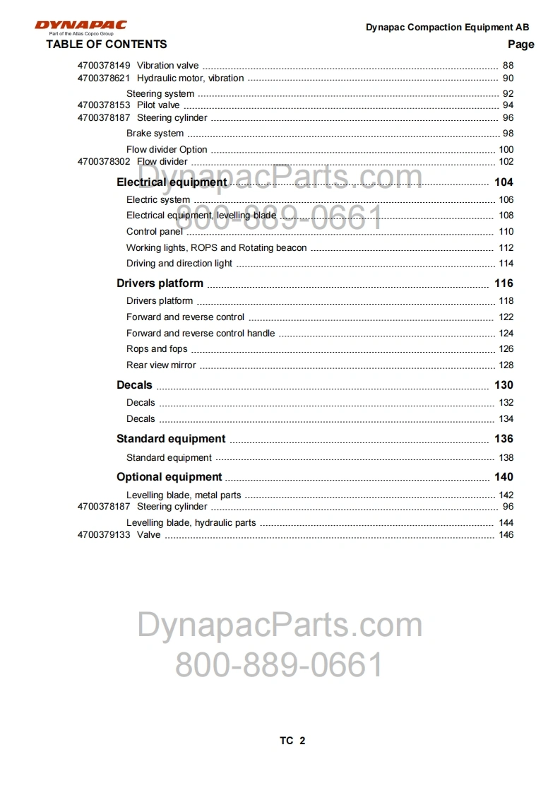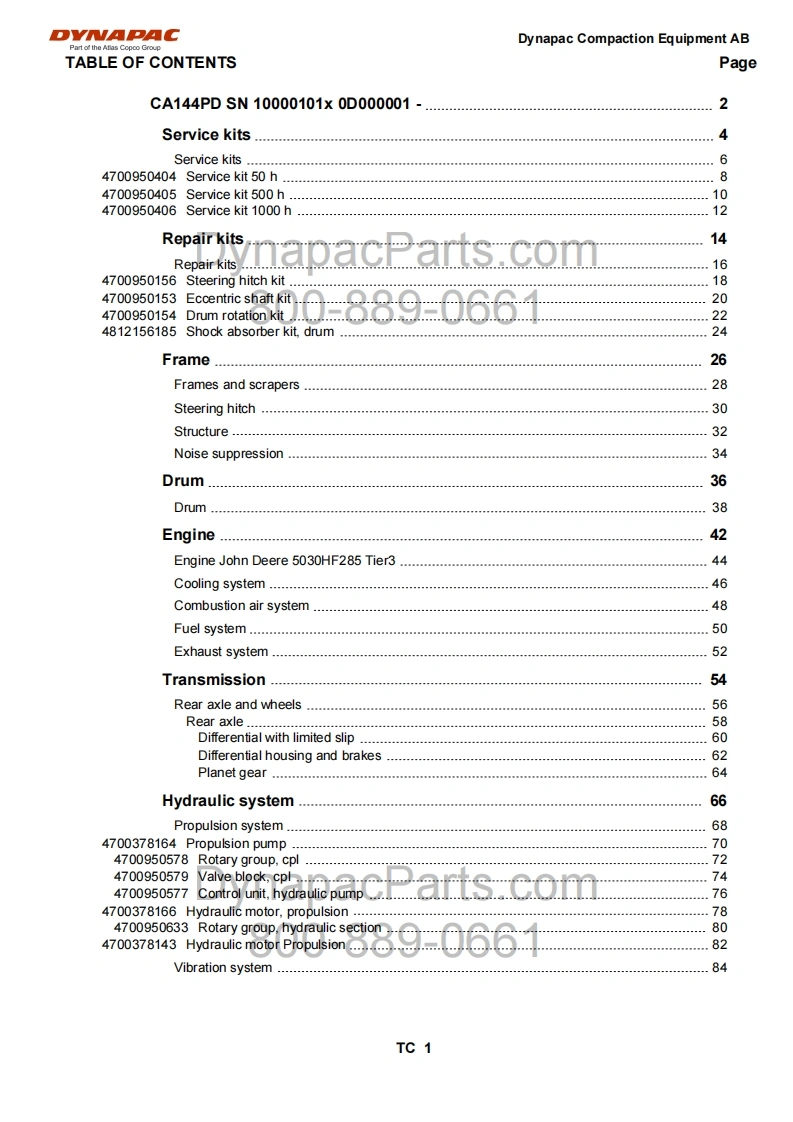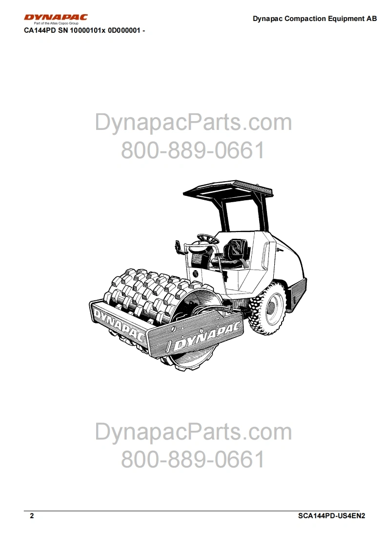 Vibratory Roller·Ya"aCCA144PDPart of the Atlas Copco GroupSpare Parts CatalogueSCA144PD-US4EN2DynapacParts.comValid from roller serial number:8001080i0g0000361Diesel engine:John Deere 5030HF285Published catalogue issues valid for these rollers:CatalogueIssue dateValid for serial numbersSCA144PD-US4EN12010-05Replaced by SCA144PD-US4EN2SCA144PD-US4EN22011-11See aboveDynapacParts.com800-889-0661We reserve the right to change specifications without noticePrinted in Sweden.