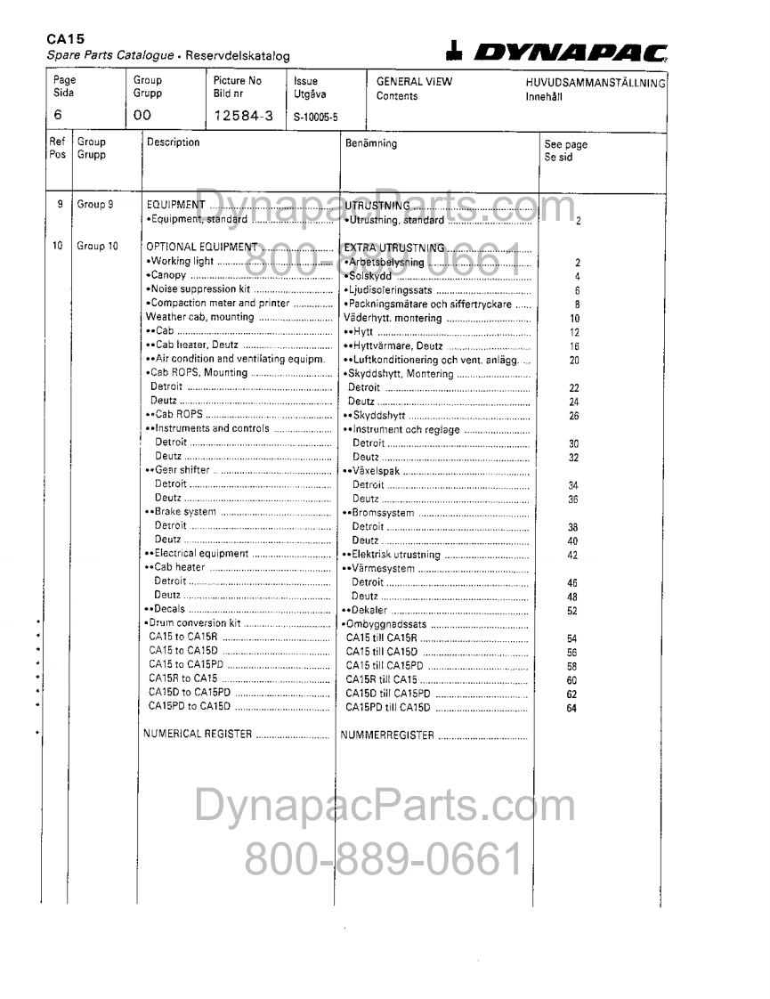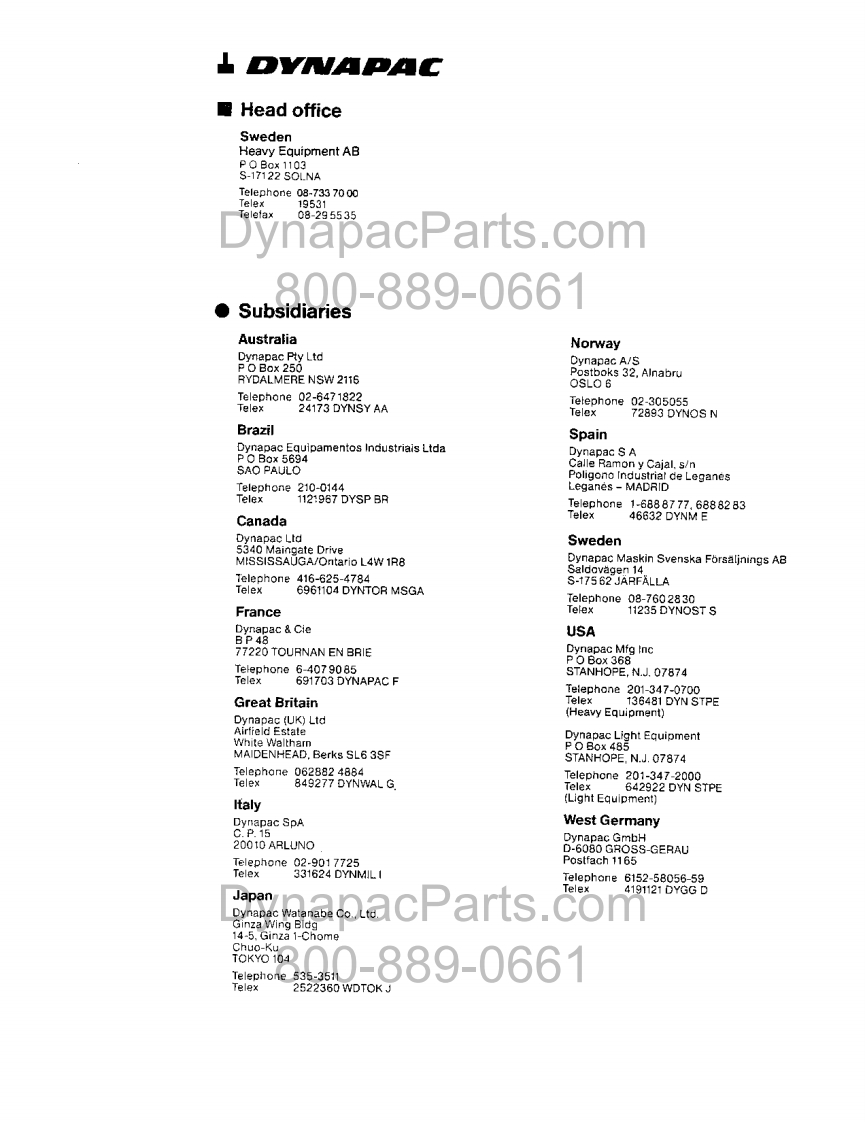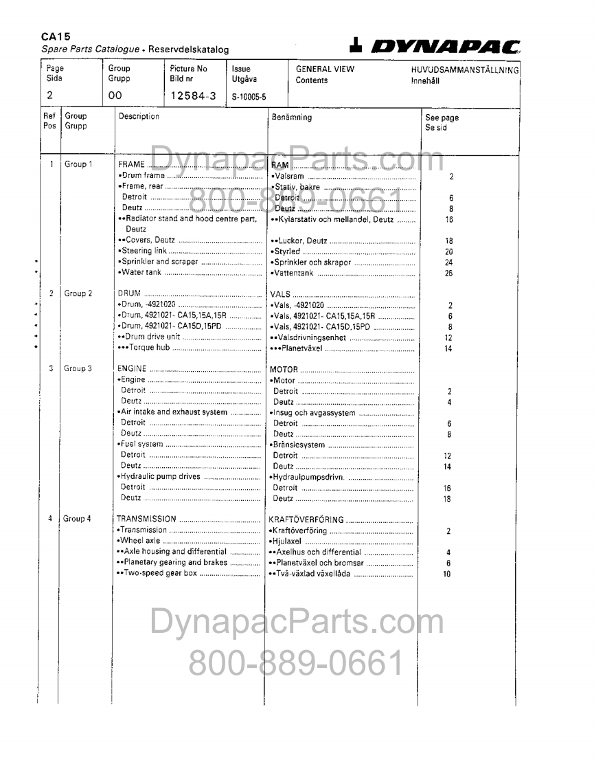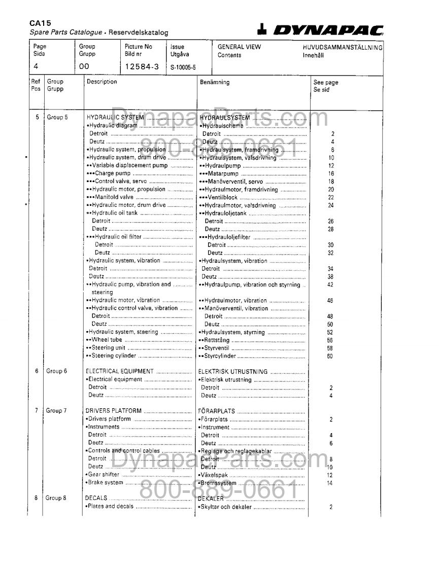 SPARE PARTS CATALOGUEDynapacParts.com800-深嚼'CA15Detroit diesel engine GM3-53SPARE PARTS CATALOGUEDeutz diesel engine F4L 912CA15VIBRATORY ROLLERS-10005-5RepTacesErsatter-10005-4DynapacParts.com6ow8a22-0661Heavy Equipment ABSpare PansP.O.Box 1103.S-171 22 SOLNA Sweden.Telephone 08-73370 00Cables Dynapac,Stockholm.Telex 19531 dynsoi s Telefax 08-29 55 35