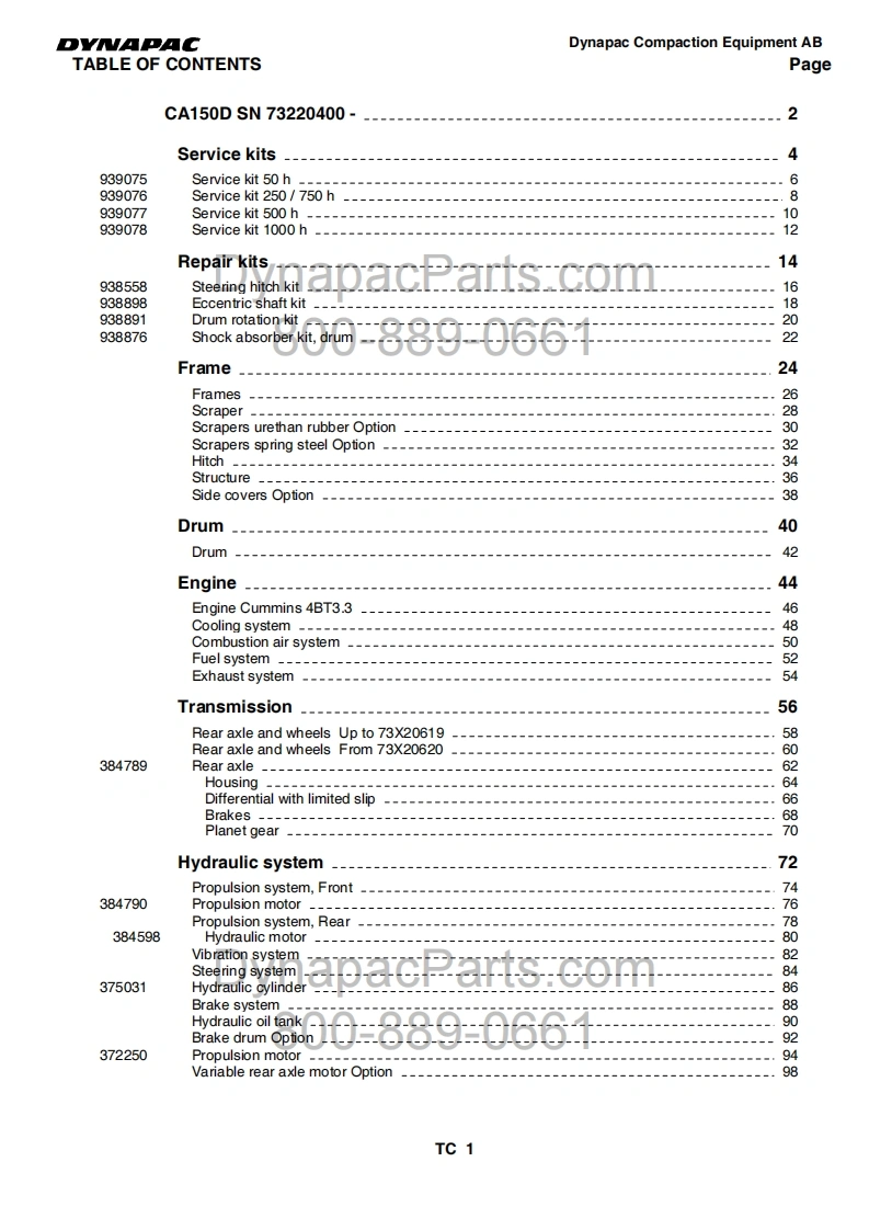 戴纳派克DYNAPACCA-150-Spare-Parts-Catalogue-SCA150D-2EN3零部件手册找手册网19天前发布关注私信3.85MB204页025戴纳派克DYNAPACCA-150-Spare-Parts-Catalogue-SCA150D-2EN3零部件手册此内容为付费资源,请付费后查看¥29¥31黄金会员免费钻石会员免费登录购买付费资源 第1页 / 共204页 第2页 / 共204页 第3页 / 共204页 第4页 / 共204页 第5页 / 共204页 第6页 / 共204页 第7页 / 共204页 第8页 / 共204页 第9页 / 共204页 第10页 / 共204页 试读已结束,还剩194页,您可下载完整版后进行离线阅读 THE END约翰迪尔/戴纳派克 文本预览 DYNAPACCA150DSPARE PARTSDyn CATALOGUEcom8SEA150D-2EN361分DynapacParts.com80D889-2261Box 504,SE-371 23 Karlskrona,SwedenPhone+46455306000,Fax+46455306010www.dynapac.com 查看更多 收起部分 喜欢就支持一下吧收藏