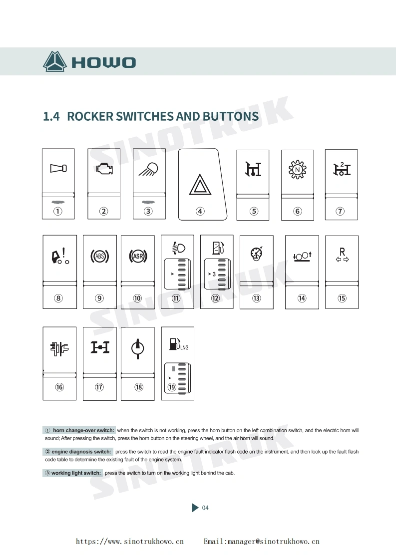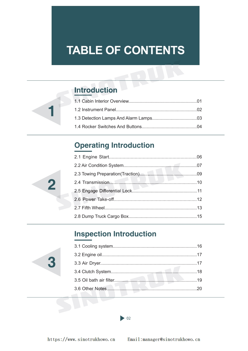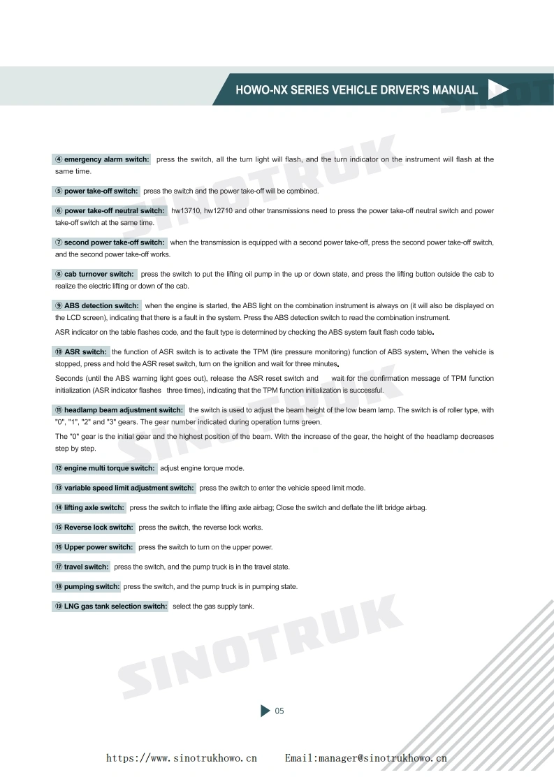 重汽HOWO-NX-SERIES-VEHICLE-DRIVER‘S-MANUAL-IN-ENGLISH找手册网18天前发布关注私信9.01MB22页026重汽HOWO-NX-SERIES-VEHICLE-DRIVER‘S-MANUAL-IN-ENGLISH此内容为付费资源,请付费后查看¥29¥31黄金会员免费钻石会员免费登录购买付费资源 第1页 / 共22页 第2页 / 共22页 第3页 / 共22页 第4页 / 共22页 第5页 / 共22页 第6页 / 共22页 第7页 / 共22页 第8页 / 共22页 第9页 / 共22页 第10页 / 共22页 试读已结束,还剩12页,您可下载完整版后进行离线阅读 THE END中国重汽 文本预览 NXHOWO-NX SERIES VEHICLEDRIVER'S MANUALEnglish version:Page 01-20https://www.sinotrukhowo.cnEmail:manager@sinotrukhowo.cn 查看更多 收起部分 喜欢就支持一下吧收藏