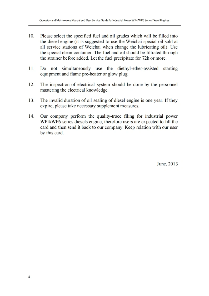 重汽Operation-and-Maintenance-Manual-and-User-Service-Guide-for-Industrial-Power-WEHCAI-WP4WP6-Series-Diesel-Engines找手册网18天前发布关注私信1.40MB52页031重汽Operation-and-Maintenance-Manual-and-User-Service-Guide-for-Industrial-Power-WEHCAI-WP4WP6-Series-Diesel-Engines此内容为付费资源,请付费后查看¥29¥31黄金会员免费钻石会员免费登录购买付费资源 第1页 / 共52页 第2页 / 共52页 第3页 / 共52页 第4页 / 共52页 第5页 / 共52页 第6页 / 共52页 第7页 / 共52页 第8页 / 共52页 第9页 / 共52页 第10页 / 共52页 试读已结束,还剩42页,您可下载完整版后进行离线阅读 THE END中国重汽 文本预览 Operation and Maintenance Manual and User Service Guide for Industrial Power WP4/WP6 Series Diesel EnginesOperation and Maintenance Manual andUser Service Guide for Industrial PowerWP4/WP6 Series Diesel Engines1 查看更多 收起部分 喜欢就支持一下吧收藏