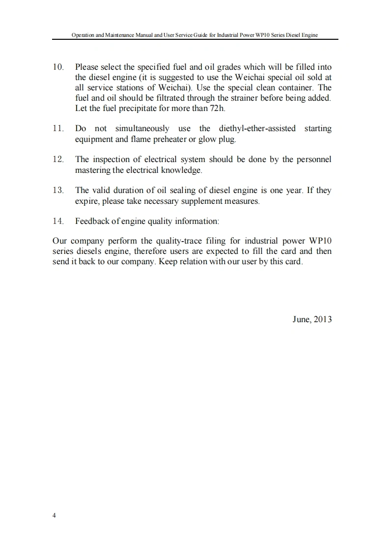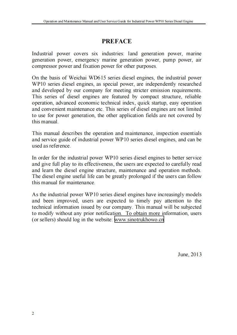 重汽Operation-and-Maintenance-Manual-of-WEICHAI-WP13D-Series-Diesel-Engines找手册网18天前发布关注私信0.95MB53页049重汽Operation-and-Maintenance-Manual-of-WEICHAI-WP13D-Series-Diesel-Engines此内容为付费资源,请付费后查看¥29¥31黄金会员免费钻石会员免费登录购买付费资源 第1页 / 共53页 第2页 / 共53页 第3页 / 共53页 第4页 / 共53页 第5页 / 共53页 第6页 / 共53页 第7页 / 共53页 第8页 / 共53页 第9页 / 共53页 第10页 / 共53页 试读已结束,还剩43页,您可下载完整版后进行离线阅读 THE END中国重汽 文本预览 Operation and Maintenance Manual and User Service Guide for Industrial Power WP10 Series Diesel EngineOperation and Maintenance Manual andUser Service Guide for Industrial PowerWP10 Series Diesel Engine1 查看更多 收起部分 喜欢就支持一下吧收藏