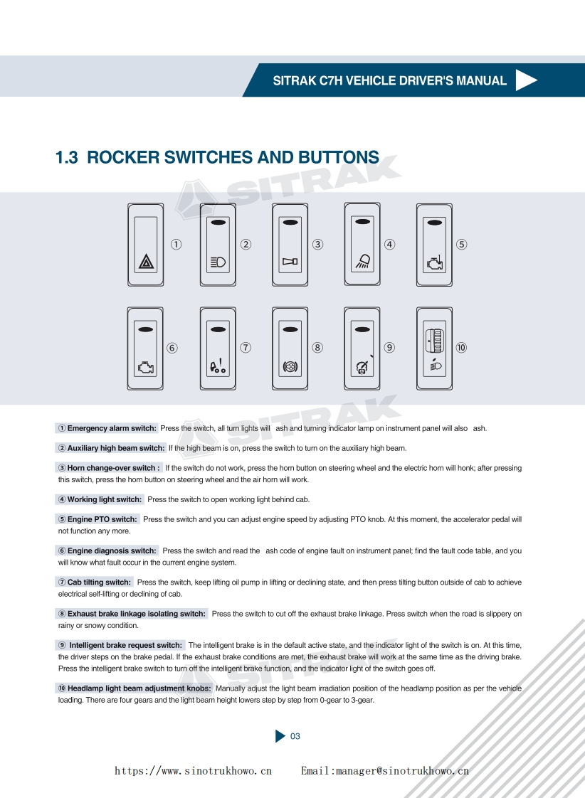 重汽SITRAK-SERIES-VEHICLE-DRIVERS-MANUAL-IN-ENGLISH找手册网19天前发布关注私信42.77MB34页029重汽SITRAK-SERIES-VEHICLE-DRIVERS-MANUAL-IN-ENGLISH此内容为付费资源,请付费后查看¥29¥31黄金会员免费钻石会员免费登录购买付费资源 第1页 / 共34页 第2页 / 共34页 第3页 / 共34页 第4页 / 共34页 第5页 / 共34页 第6页 / 共34页 第7页 / 共34页 第8页 / 共34页 第9页 / 共34页 第10页 / 共34页 试读已结束,还剩24页,您可下载完整版后进行离线阅读 THE END中国重汽 文本预览 SITRASITRAK C7HVEHICLE DRIVER'S MANUALEnglish version:Page 01-32https://www.sinotrukhowo.cn Email:manager@sinotrukhowo.cn 查看更多 收起部分 喜欢就支持一下吧收藏