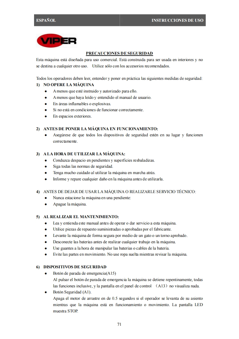 viper-as710r-1-0034605001682514430操作与维修手册含电器原理图找手册网22小时前发布关注私信4.29MB18页042viper-as710r-1-0034605001682514430操作与维修手册含电器原理图此内容为付费资源,请付费后查看¥19¥21黄金会员免费钻石会员免费立即购买您当前未登录!建议登陆后购买,可保存购买订单付费资源 第1页 / 共18页 第2页 / 共18页 第3页 / 共18页 第4页 / 共18页 第5页 / 共18页 第6页 / 共18页 第7页 / 共18页 第8页 / 共18页 第9页 / 共18页 第10页 / 共18页 试读已结束,还剩8页,您可下载完整版后进行离线阅读 THE ENDViper 文本预览 VIPERRide-on Scrubbers(€USER MANUALREAD USER MANUAL CAREFULLY BEFORE USEModelSerial No.#VR10029EUREV.122022-03 查看更多 收起部分 喜欢就支持一下吧收藏