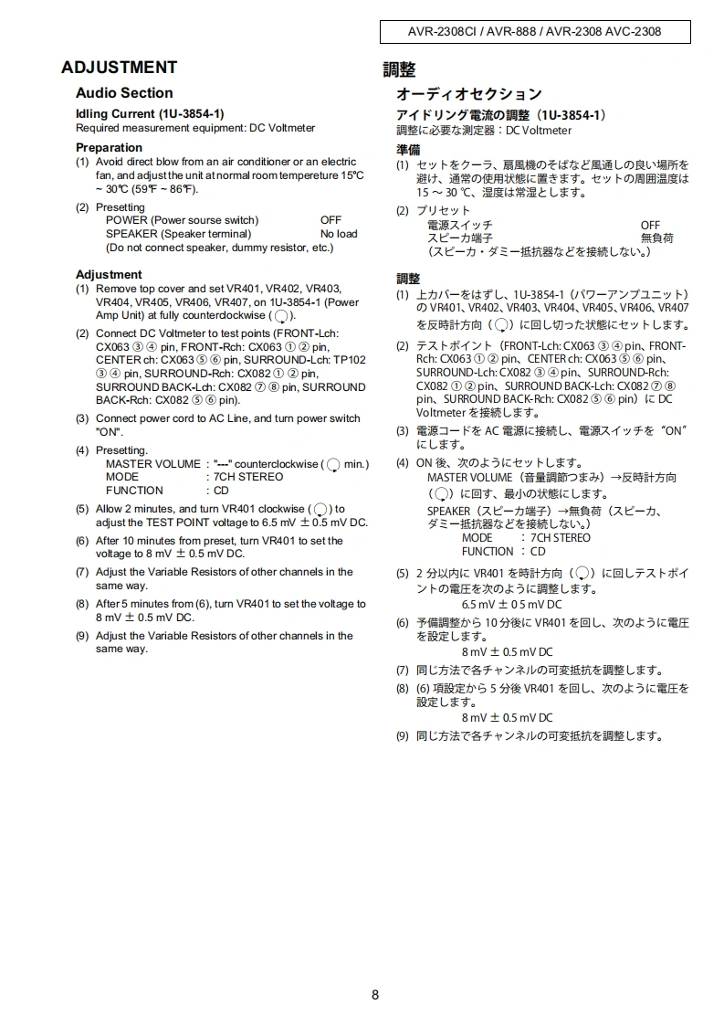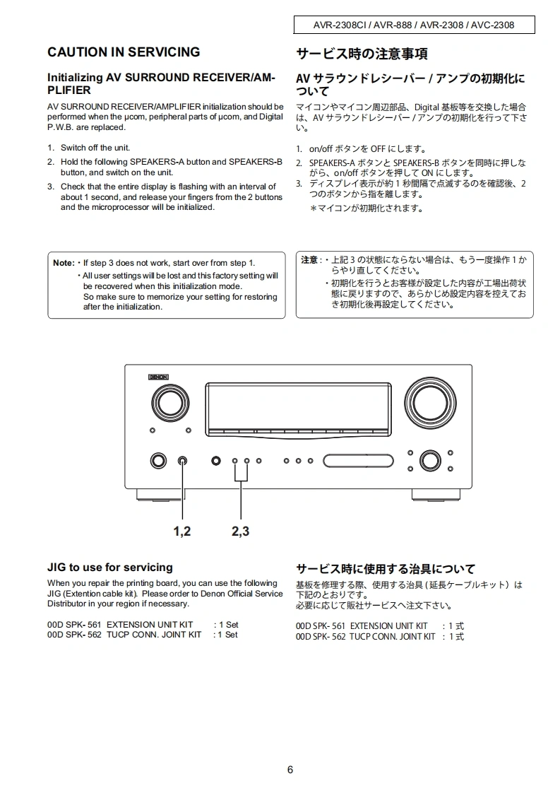 DENONVer.3Please refer to theMODIFICATION NOTICE.SERVICE MANUALMODELJPE3E2EKE2AE1CEUTAVR-2308C1AVR-888AVR-2308△AVC-2308△AV SURROUND RECEIVERAV SURROUND AMPLIFIER注意廿一上又苍方乙存前忙、乙)圹一上又又二1了儿卷必寸方蔬以<龙古U。本機志、火災、感電、付扩存ビ亿对寸石安全性卷確保寸石上、志夫芯去存配感态茄乙本一(茄)、未左法的体「電氨用品安全法」屯上老、所定)許可在得(製造志九(方)未寸。徙)乙圹一七又苍方乙存際体、乙九5)安全性扩雜持志九石、乙)圹一上又マ二ュ了忙配載达九(U八石注意事項在必寸訪守以〈龙过。For purposes of improvement,specifications and·本機)仕横:性能改良)大协、予告存〈变更寸石乙匕design are subject to change without notice.扬李寸。·補修用性能部品)保有期間:、製造打切後8年C寸。Please use this service manual with referring to the·修理)際:、必寸取极锐明苦卷参照)上、作業左行一operating instructions without fail.(〈龙t。Some illustrations using in this service manual are·本文中忙使用L(石亻与又卜休、脱明)都合上現物slightly different from the actual set.多少異在局場合小齿)ま寸。DENONTOKYO,JAPANDenon Brand Company,D&M Holdings IncX0358V.03DE/CDM0708