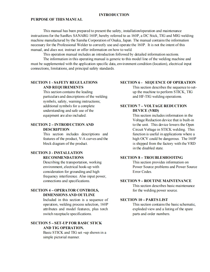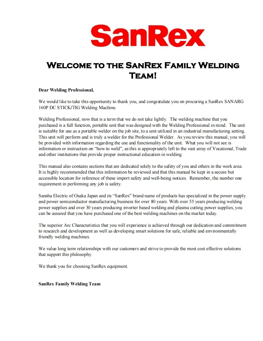 SANREX-160P-OP-Manual-REVC-21AUG2019操作手册含电器原理图找手册网22小时前发布关注私信2.79MB82页031SANREX-160P-OP-Manual-REVC-21AUG2019操作手册含电器原理图此内容为付费资源,请付费后查看¥19¥21黄金会员免费钻石会员免费立即购买您当前未登录!建议登陆后购买,可保存购买订单付费资源 第1页 / 共82页 第2页 / 共82页 第3页 / 共82页 第4页 / 共82页 第5页 / 共82页 第6页 / 共82页 第7页 / 共82页 第8页 / 共82页 第9页 / 共82页 第10页 / 共82页 试读已结束,还剩72页,您可下载完整版后进行离线阅读 THE ENDSanrex 文本预览 SanRexSANARG160PDC INVERTERARC WELDEROperatorsManualVersion No:C Issue Date:AUG.21,2019Manual No:K00A031700 查看更多 收起部分 喜欢就支持一下吧收藏