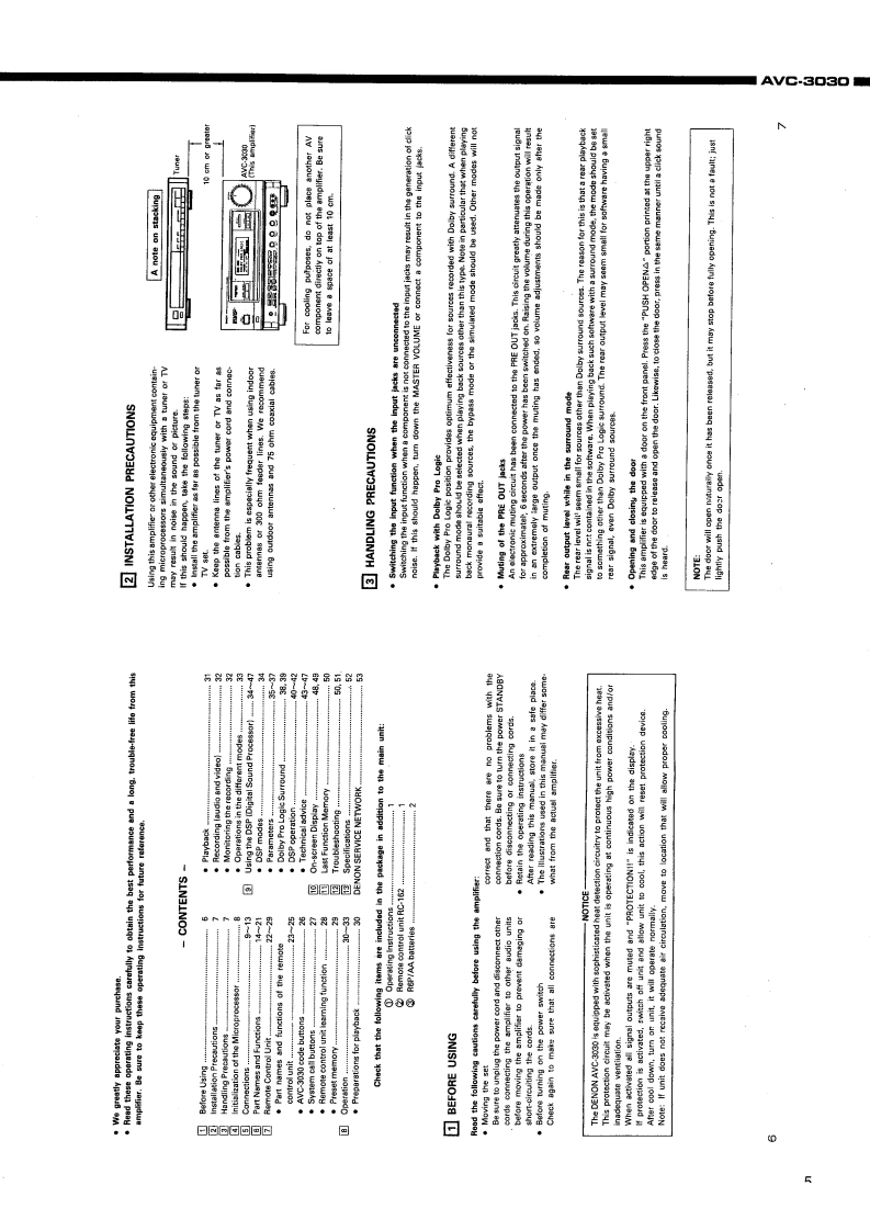 3DENONAV Surround AmplifierSERVICE MANUALMODEL AVC.3▣3OAV SURROUND AMPLIFIER000CONTENTSOPERATING INSTRUCTIONS……2-28DISASSEMBLY2ADJUSTMENTSEMICONDUCT0RS...........................31-37PRINTED WIRING BOARD38-42PRINTED WIRING BOARD PARTS LIST42-WIRINGDIAGRAM ......................................................................50SCHEMATIC DIAGRAM.51-5BLOCK DIAGRAM55EXPLODED VIEW OF CHASSIS AND CABINETPARTS LIST OF EXPLODED VIEW5REMOTE CONTROL UNIT…58-60SCHEMATIC DIAGRAM...............................................................5EXPLODED VIEWPARTS LIST60KEY LAYOUTNIPPON COLUMBIA CO..LTD.