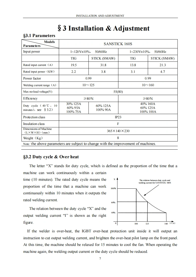 INTRODUCTIONOPERATORS MANUALInverter DC STICK(SMAW)Arc Welding MachineSANSTICK 160SSanRexUSIMPORTANT:Read this Owner's Manual Completely before attempting to use thisequipment.Save this manual and keep it handy for quick reference.Pay particularattention to the safety instructions we have provided for your protection.Contact yourdistributor if you do not fully understand this manual.8.850.211-U2018.10.12