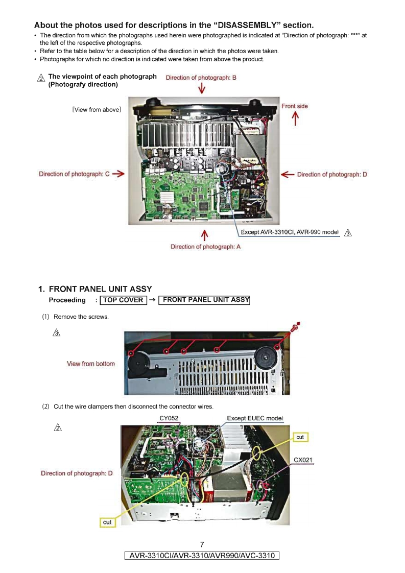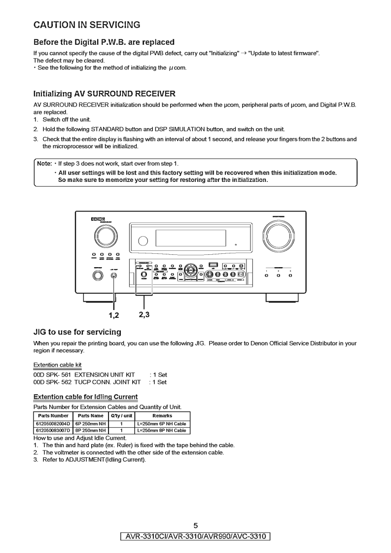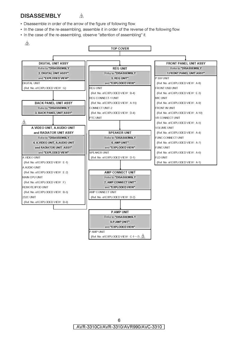 DENONVer.5Please refer to theMODIFICATION NOTICE.SERVICE MANUALMODELJpEUECE2E3E2AE1CEUTAVR-3310CIAVR-33102AVR-990AV SURROUND RECEIVERMODELJPEUECE2E3E2AE1CEUTAVC-3310AV SURROUND AMPLIFIERFor purposes of improvement,specifications and design are subject to change without noticePlease use this service manual with referring to the operating instructions without fail.Some illustrations using in this service manual are slightly different from the actual set.DENOND&M Holdings Inc.S00241V05DM/DG0912Copyright 2009 D&M Holdings Inc.All rights reserved.WARNING:Violators will be prosecuted to he maximum extent possible.