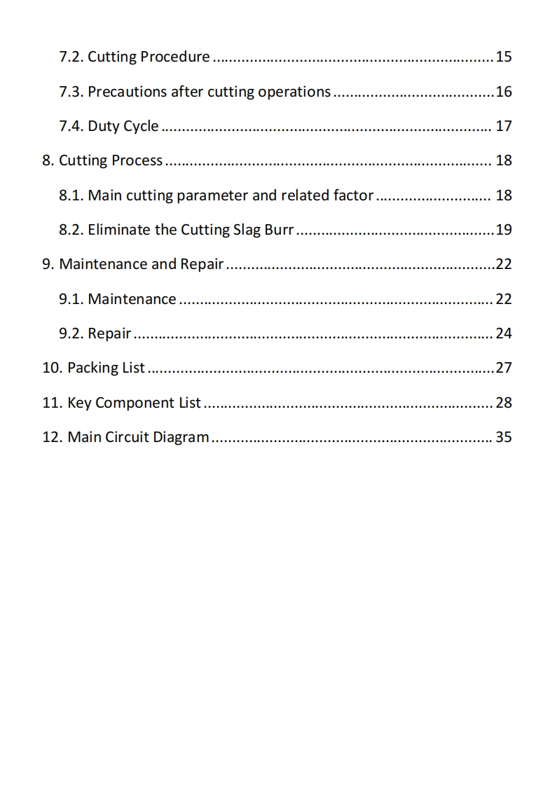 LGK-120LT操作与维护手册找手册网19天前发布关注私信1.10MB40页027LGK-120LT操作与维护手册此内容为付费资源,请付费后查看¥19¥21黄金会员免费钻石会员免费登录购买付费资源 第1页 / 共40页 第2页 / 共40页 第3页 / 共40页 第4页 / 共40页 第5页 / 共40页 第6页 / 共40页 第7页 / 共40页 第8页 / 共40页 第9页 / 共40页 第10页 / 共40页 试读已结束,还剩30页,您可下载完整版后进行离线阅读 THE END华远 文本预览 LGK-120LTPLASMA CUTTING MACHINEMANUALINSTRUCTION(PLEASE READ CAREFULLY BEFORE OPERATION) 查看更多 收起部分 喜欢就支持一下吧收藏