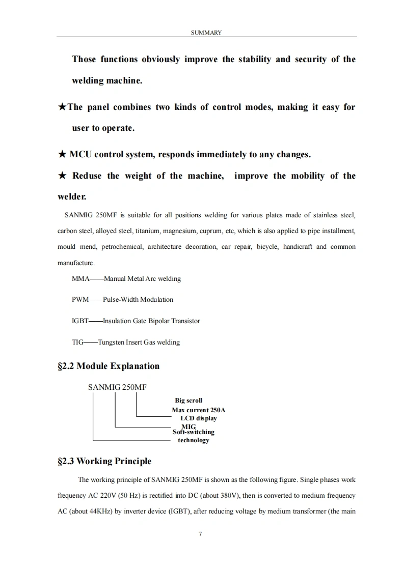 OPERATOR'S MANUALINVERTER DC MIG WELDERSANMIG 250MFUSSanRex8.850.142IMPORTANT:Read this Owner's Manual Completely before attempting to use thisequipment.Save this manual and keep it handy for quick reference.Pay particular2018.09.20attention to the safety instructions we have provided for your protection.Contact yourdistributor if you do not fully understand this manual.