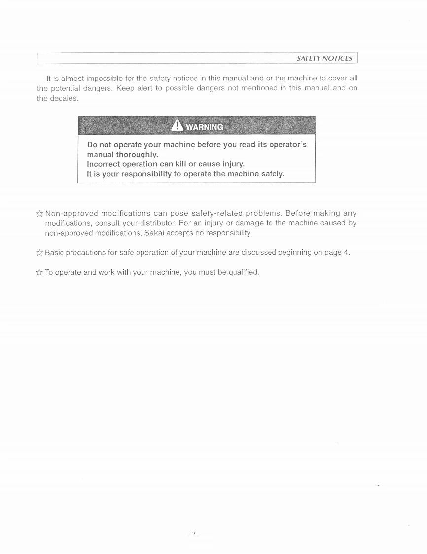 N0.3498-31300-1A Read this handbook thoroughly and understand the whole informationcontained before trying to operate,inspect and service your machine!OPERATINGMAINTENANCEINSTRUCTIONSMODELR2-1Series3-WHEELROLLERR2 R2H-FromRR4-50577SAKAI