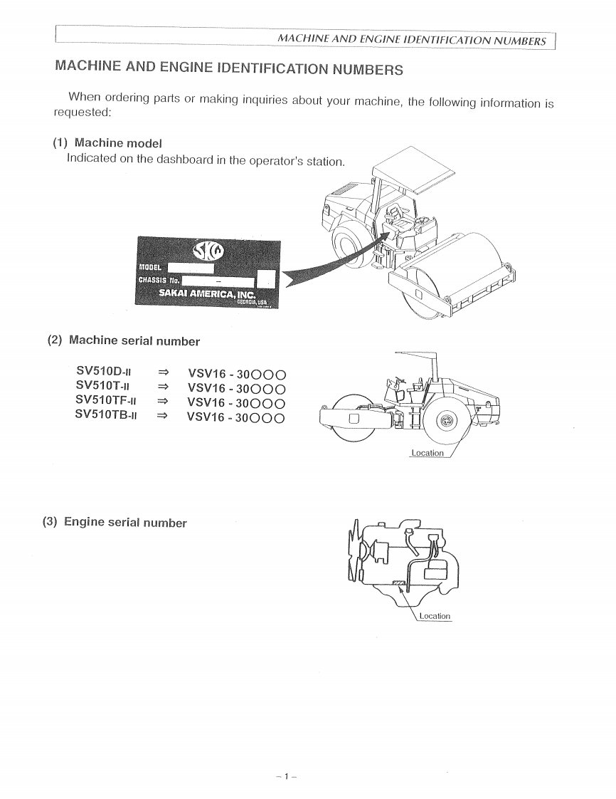 N0.3498-35650-0-AARead this handbook thoroughly and understand the whole informationcontained before attempt to operate,inspect and service your machine!OPERATINGMAINTENANCEINSTRUCTIONSMODELSV510-1 SeriesVIBRATINGSV510D-11SV510TF-1ROLLERSV510T-1SV510TB-I1From VSV16-30143SAKAI®