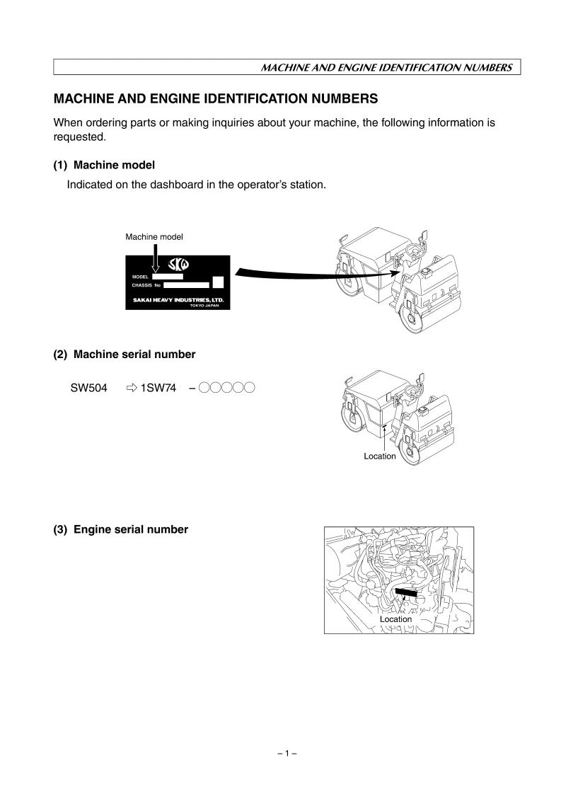 N0.3498-36630-3A Read this handbook thoroughly and understand the whole informationcontained before trying to operate,inspect and service your machine!OPERATINGMAINTENANCEINSTRUCTIONSMODEL with ECO MODEVIBRATINGROLLERSW504From SW504→1SW74-30170SAKAI