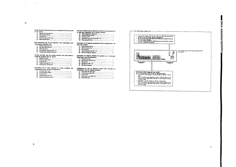 6子DENONHi-Fi AM-FM Stereo RecieverSERVICE MANUALFor EUROPEANAnd U.K ModelsMODEL▣RA-565RDMODEL DRA-365RDAM-FM STEREO RECIEVERDRA-565RDDRA-365RDTABLE OF CONTENTSOPERATING INSTRUCTIONS....................................................2-9DISASSEMBLY,,.-··10.11METHOD OF ADJUSTMENTS12CONNECTION DIAGRAM OF MEASURING INSTRUMENTS ....................................13SeMC0 NDUCTORS,,,1316BLOCK/LEVELDIAGRAM (DRA-565RD)....................................................BLOCK/LEVELDIAGRAM (DRA-305RD)....................................................1NOTE ON PARTS LIST ..................................................................PRINTED WIRING BOARD PARTS LIST (DRA-565RD).......................................18,19PRINTED WIRING BOARD PARTS LIST(DRA-365RD).......................................19,20PRINTED WAIRING BOARD PATTERNS..............................................21-231U-2731B MAIN UNIT (DRA-565RD).....................................................1U-2731 MAIN UNIT (DRA365RD).,,,.....,21U-2732B TUNER DISPLAY UNIT (DRA-565RD)1U-2732 TUNE&DISPLAY UNIT(DRA-365RD)............................................4WIRING DIAGRAM......................................................................25EXPLODED VIEW OF CHASSIS AND CABINET (DRA-565RD)....................................PARTS LIST OF EXPLODED VIEW(DRA-565RD)..............................................PARTS LIST OF EXPLODED VIEW (DRA-365RD).........EXPLODED VIEW OF CHASSIS AND CABINET (DRA-365RD)6789SCHEMATIC DIAGRAM (for DRA-565RD).................31SCHEMATIC DIAGRAM (ior DRA-365RD).....NIPPON COLUMBIA CO.,LTD.