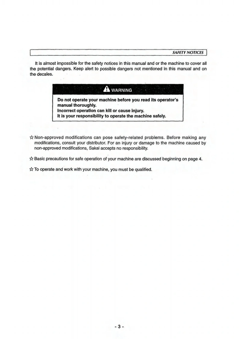 N0.3498-36150-3A Read this handbook thoroughly and understand the whole informationcontained before trying to operate,inspect and service your machine!OPERATINGMAINTENANCEINSTRUCTIONSMODELsW800-11sN850-1IVIBRATINGROLLERSW85OND-SAKAI