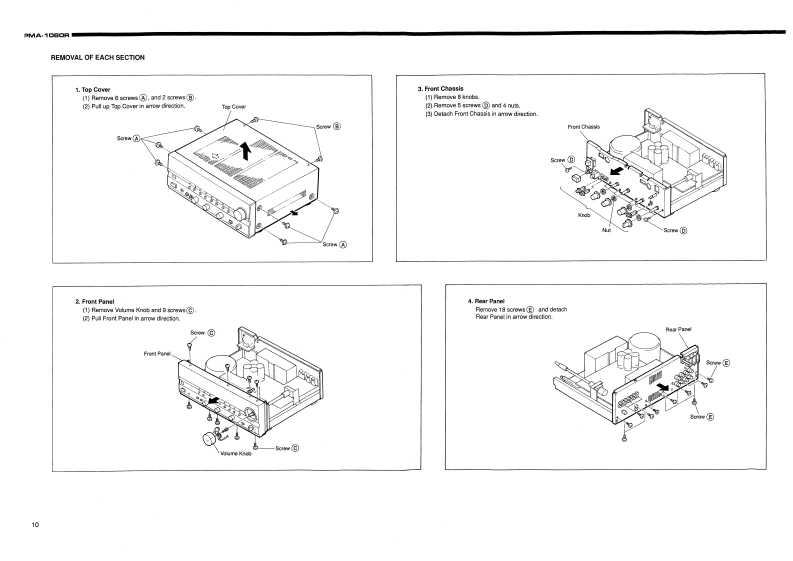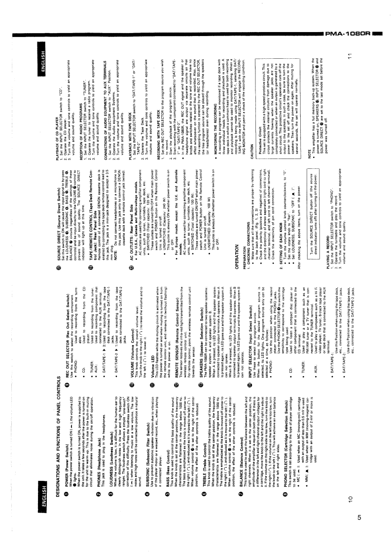DENONHi-Fi Integrated Stereo AmplifierSERVICE MANUALMODEL PMA-1▣8RINTEGRATED STEREO AMPLIFIERDENONCONTENTSOPERATING INSTRUCTIONS2-7BLOCK AND LEVEL DIAGRAM9METHOD OF ADJUSTMENTSREMOVAL OF EACH SECTION10SEMICONDUCTORS……:PRINTED WIRING BOARD12,13PRINTED WIRING BOARD PARTS LIST.1417WIRING DIAGRAM.18EXPLODED VIEW OF CHASSIS AND CABINET19PARTS LIST OF EXPLODED VIEW20SCHEMATIC DIAGRAM................................................................21,22NIPPON COLUMBIA CO..LTD