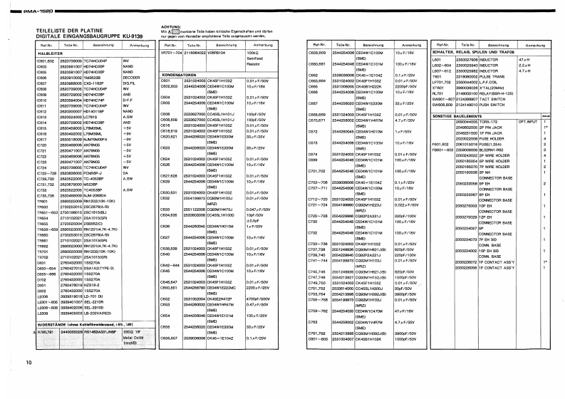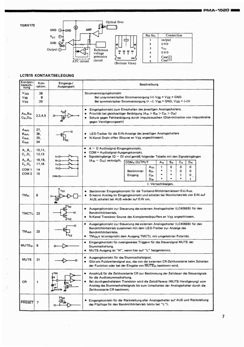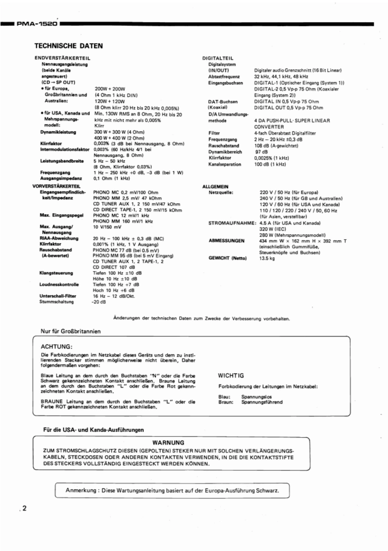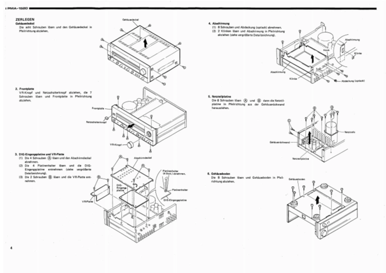 DENONntegrierter Hi-Fi-StereoverstarkerWARTUNGSANLEITUNGTYP PMA=M52▣INTEGRIERTER STEREOVERSTARKERINHALTTECHNISCHE DATEN..,2ANSCHLUSSEZERLEGEN4EINSTELLUNG..BLOCKSCHALTUNG U.PEGELDIAGRAMM,,·····,·,6HALBLEITER69TEILELISTE DER PLATINE…1012PLATINENETZTEIL-UND KLANGREGELBAUGRUPPE KU-9138H(Europa ausfuhrung)..............13NETZTEIL-UND KLANGREGELBAUGRUPPE KU-9141H(Ausfuhrung fur USA und Kanada)....14ENDSTUFENBAUGRUPPE KU-9137H..........................................DIGITALE EINGANGSBAUGRUPPE KU-913916EXPLOSIONSZEICHNUNG VON CHASSIS UND GEHAUSE UND TEILELISTE,··.·.··.ZUSATZLISTE。,,,,。,,,,,,,,,,。,,,,,,,,,,,,,,。,,17ANSCHLUSSDIAGRAMM.................18SCHALTPLAN (ANALOGTEIL).........19SCHALTPLAN (DIGITALTEIL)20NIPPON COLUMBIA CO..LTD