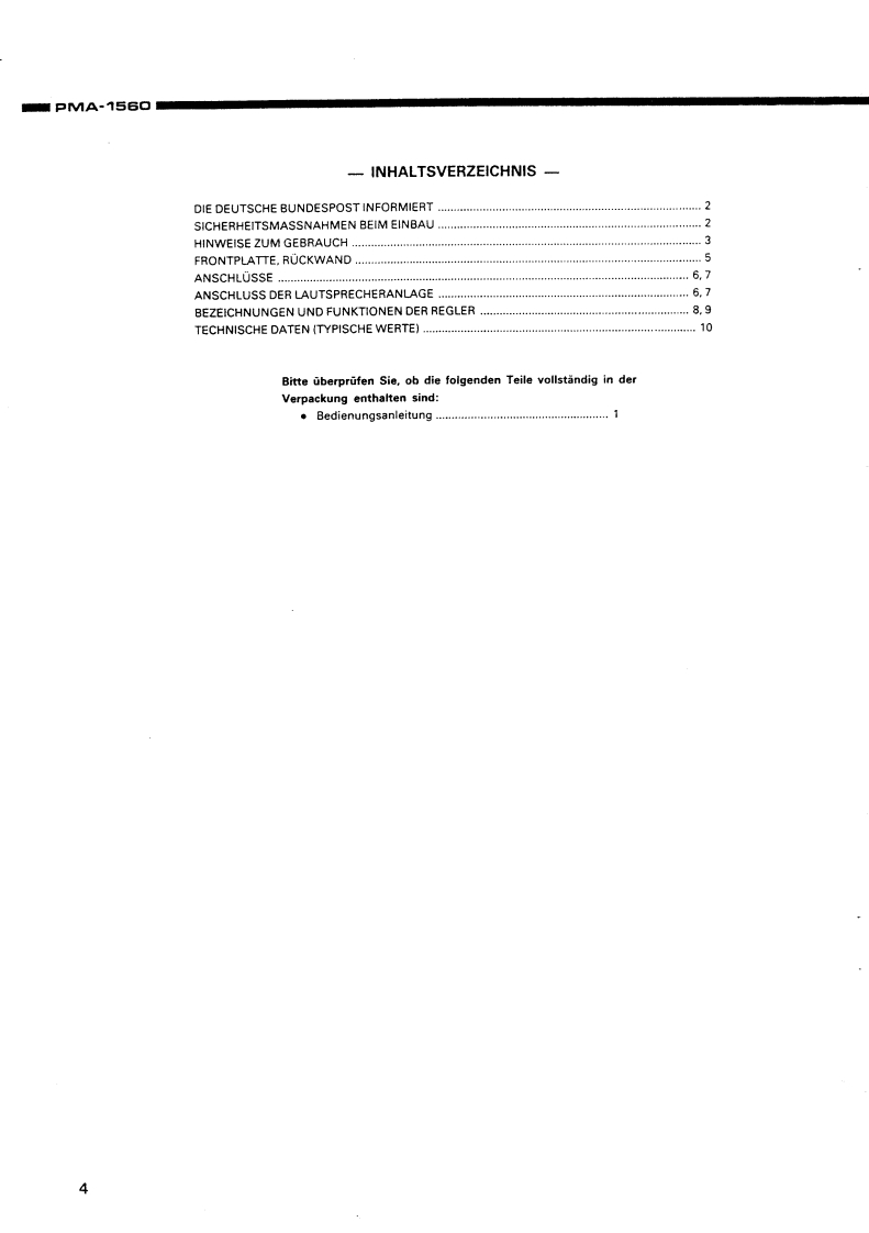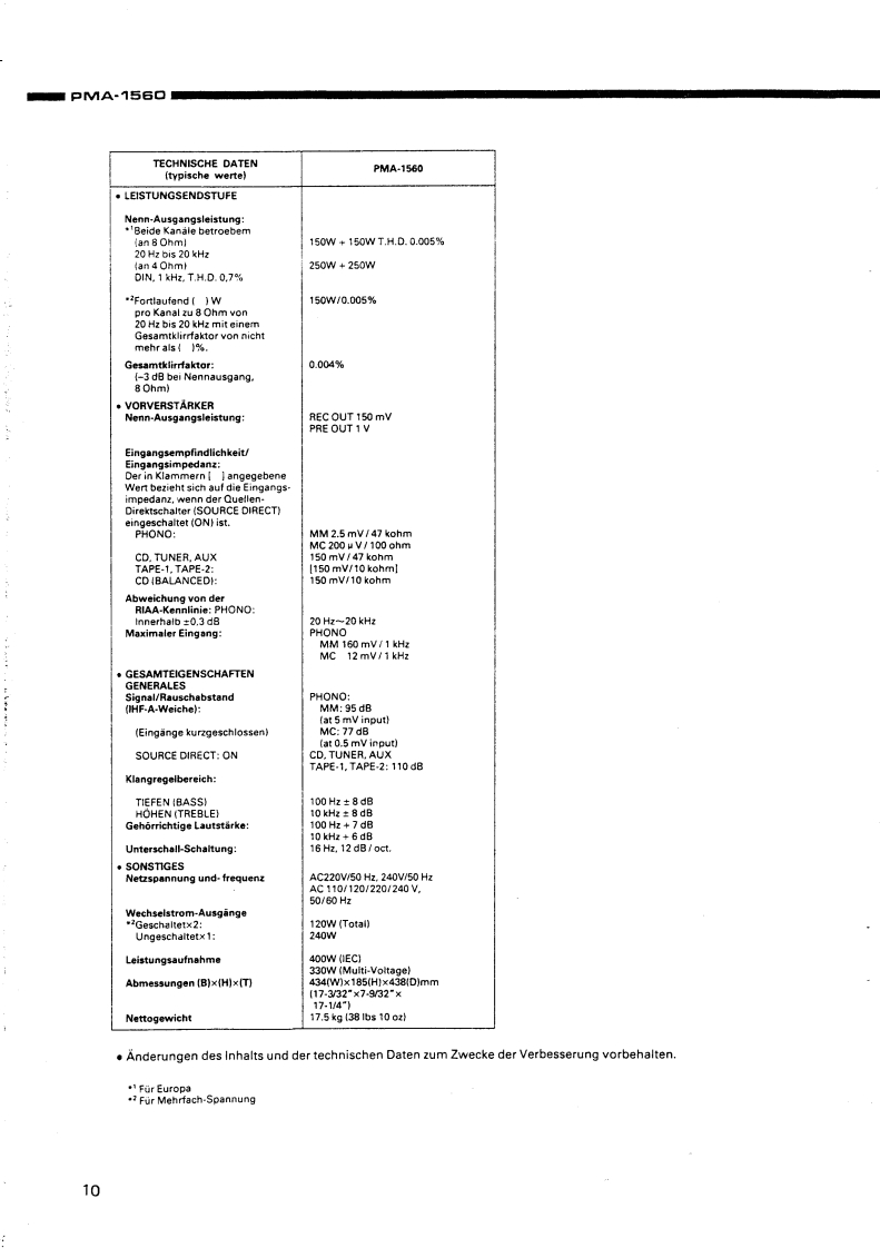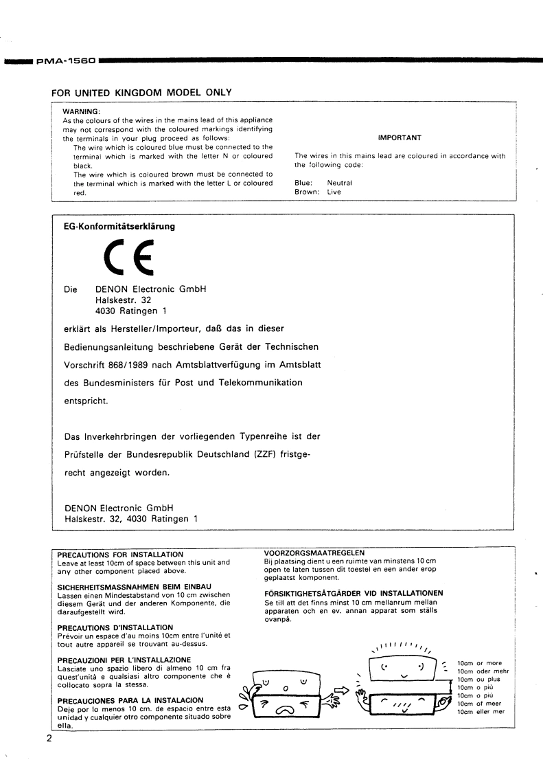 DENONHi-Fi VollverstarkerWARTUNGSANLEITUNGTYPPMA-1560INTEGRIERTER STEREOVERSTARKERINHALTSVERZEICHNISBETRIEBSANLEITUNG2-9TECHNISCHE DATENBLOCK-,PEGELDIAGRAMMEINSTELLUNGSMETHODEN12ENTFERNEN DER EINZELTEILE ..........................................................HALBLEITER,,,,,,,.,·,,··14HINWEIS ZUR BESTANDTEILLISTEBESTANDTEILLISTEFURDIEGEDRUCKTESCHALTUNG...................................15,16GEDRUCKTE SCHALTUNGEINGABE-UND STEUEREINHEIT ..........................................................17STROMVERSORGUNG UND ANDERESPS.EINHET ...........................................................................19SCHALTPLAN.2PRINZIPSKIZZEEXPLOSIONSZEICHNUNG VON CHASSIS UND GEHAUSE22BESTANDTEILLISTE FUR DIE EXPLOSIONSZEICHNUNGNIPPON COLUMBIA CO,LTD.